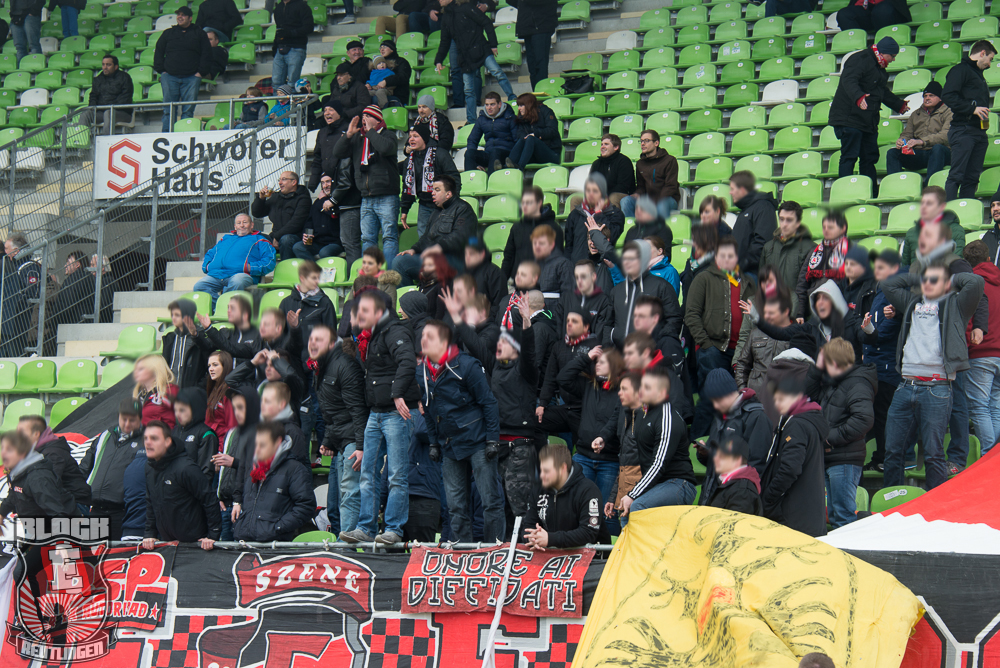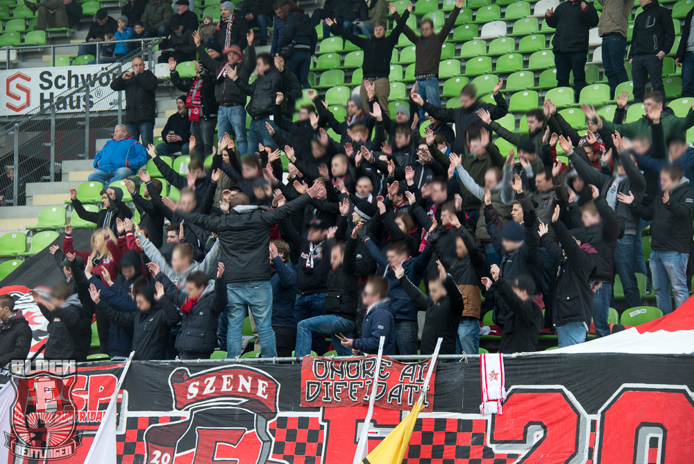 Block E, der heute mit den üblichen 60 Ultras gefüllt war, versuchte bis zum vierten Tor die Mannschaft lautstark zu unterstützen und nach vorne zu treiben. Mit der Halbzeit verließen wir jedoch das Stadion und warteten davor auf die Mannschaft. Diese konnte zwar in der zweiten Halbzeit noch auf 2:4 verkürzen, an der unfassbar schlechten Leistung änderte das jedoch wenig.
