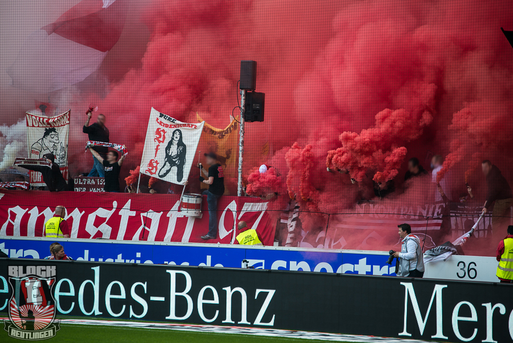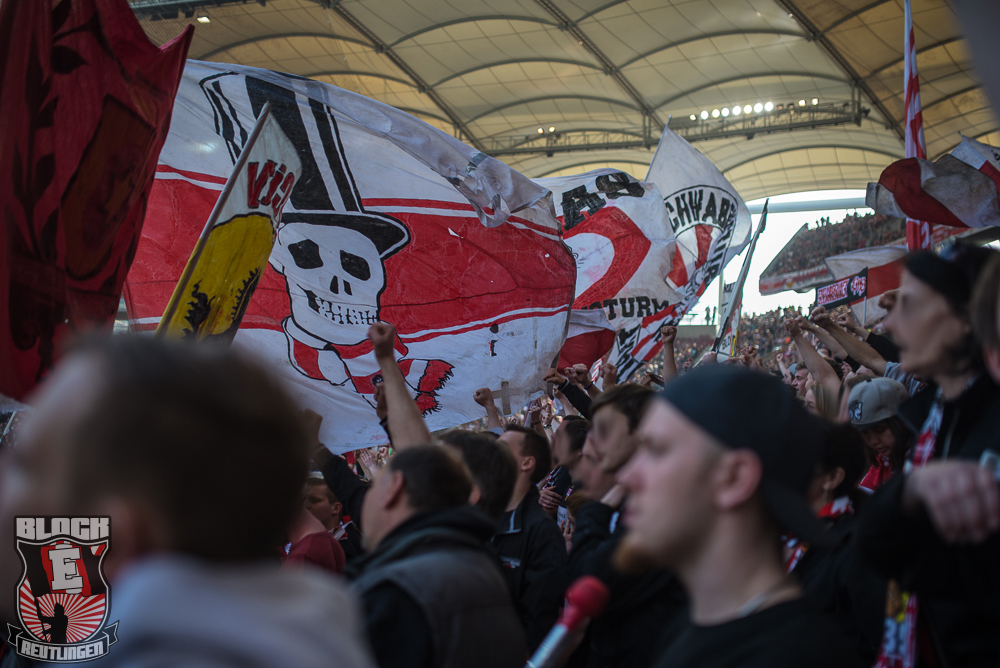 Der Support der Cannstatter Kurve konnte an diesem vor allem in der ersten Halbzeit überzeugen. Auf dem Rasen erzielte der VfB in einem spannenden Spiel in der Nachspielzeit den 3:2 Siegtreffer und gab somit die rote Laterne an den HSV ab. Letztlich war es nur ein kleiner Schritt Richtung Klassenerhalt, denn weitere sechs Endspiele stehen noch bevor.