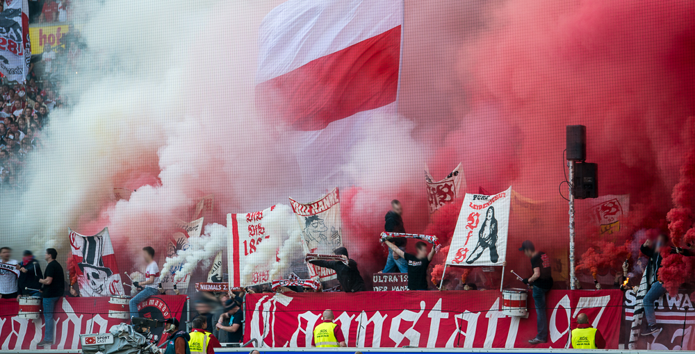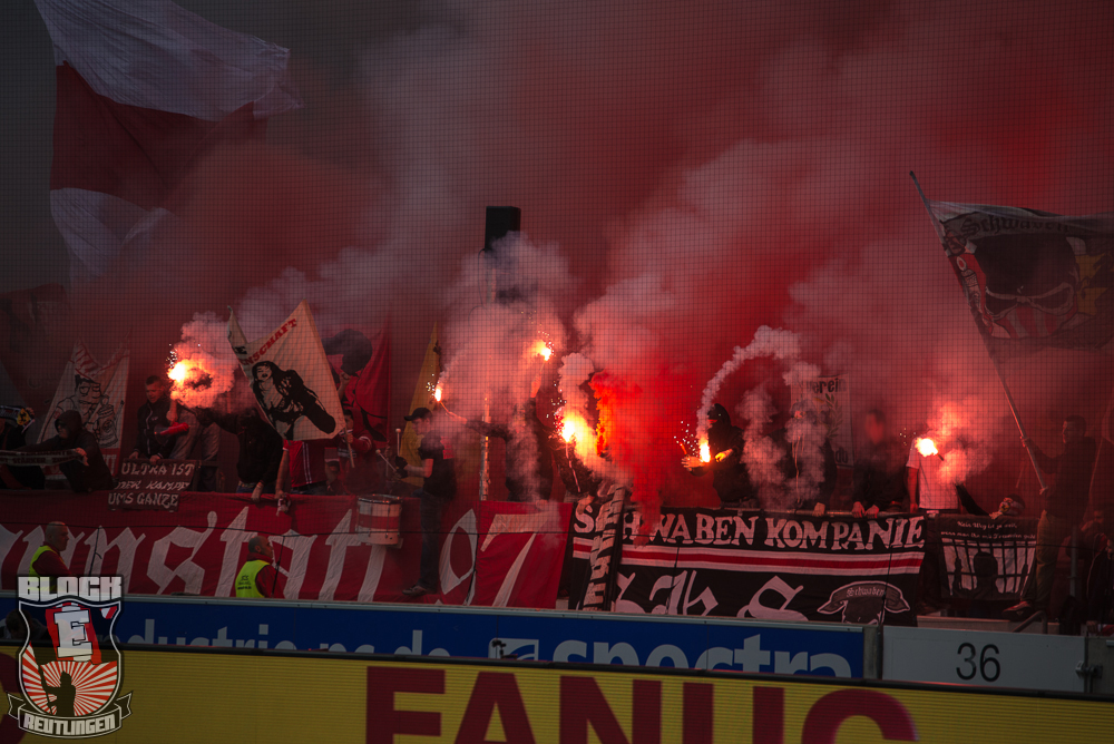 Auf den Rängen startete die Cannstatter Kurve mit einer fetten Rauchshow in die Partie. Diese wurde durch zahlreiche Fackeln, die unmittelbar danach erleuchteten, komplettiert. Erwähnenswert ist vor allem, dass keinerlei Pfiffe während der Aktion aus den anderen Zuschauerblöcken zu vernehmen waren.
