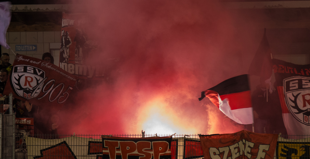 Im Gästeblock versammelten sich rund 80 Reutlinger, eine zufriedenstellende Anzahl für einen Freitagabend. Block E legte nach längerer Zeit auch auswärts endlich wieder einen zufriedenstellenden und lautstarken Auftritt hin, der von durchgängigem Tifo – Einsatz abgerundet wurde. Zwar ist der ergatterte Punkt im Abstiegskampf zu wenig, doch auf die Leistung der Mannschaft lässt sich aufbauen.