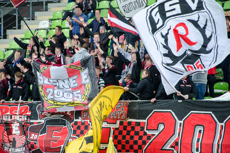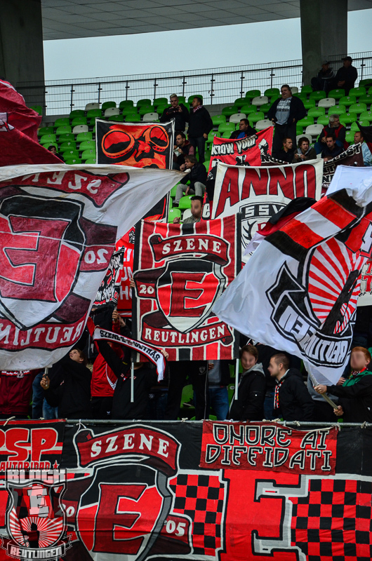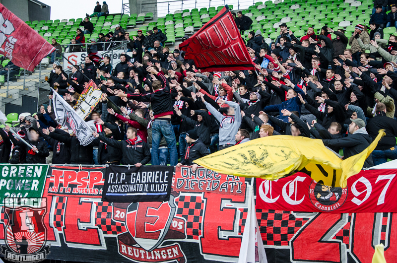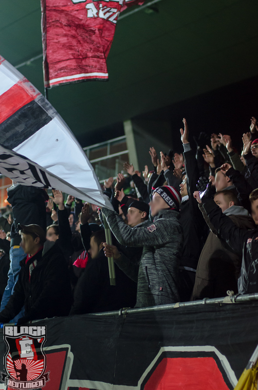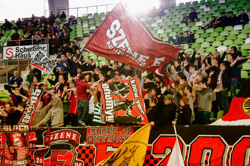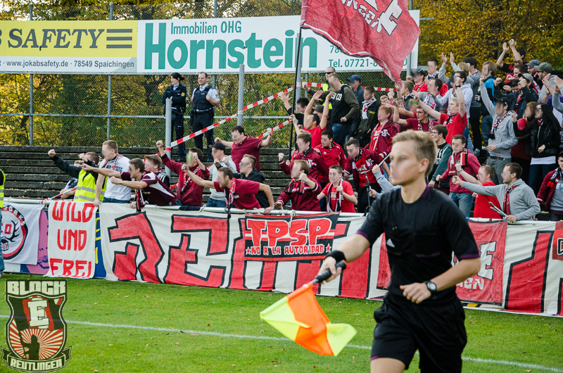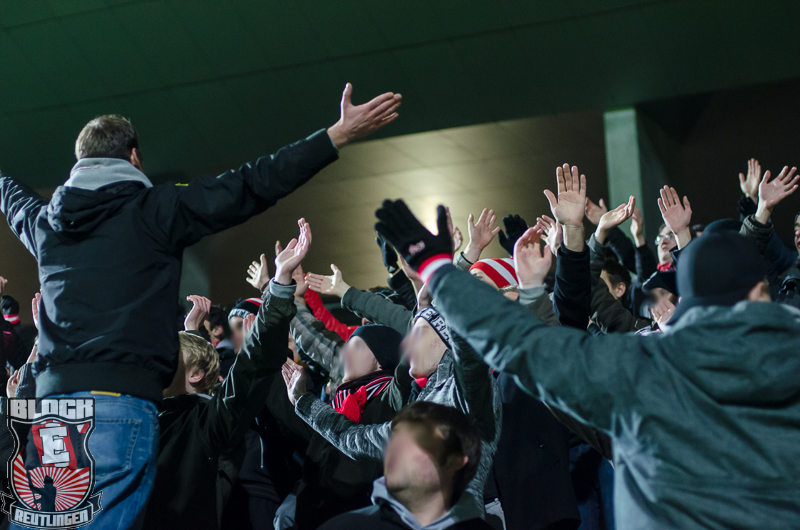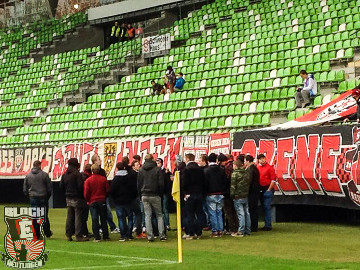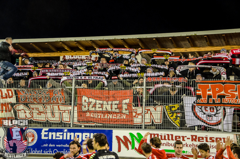 Im Gästeblock versammelten sich rund 130 Reutlinger, davon 80 Supportwillige, die sich hinter unserer Reutlingen – Zaunfahne einfanden. Unser Auftritt im Stadion war In Ordnung. Zwar begann der Support recht zäh, konnte dann aber gesteigert werden.