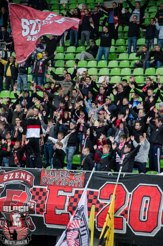 Block E legte einen guten Auftritt im Stadion hin. Von der ersten Minute an wurden die Lieder lautstark gesungen und trotz ungünstigem Spielverlauf versucht gegen die drohende Niederlage anzukämpfen.