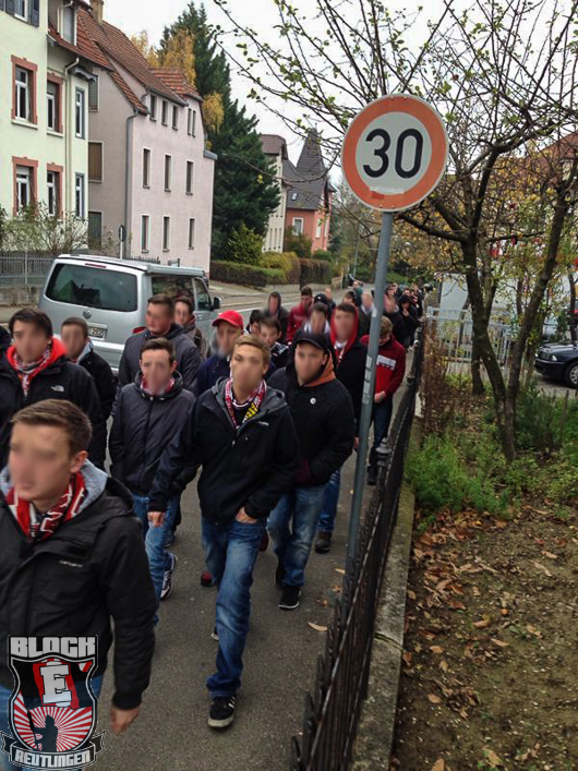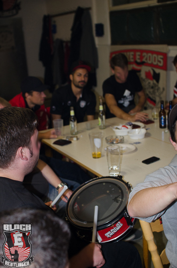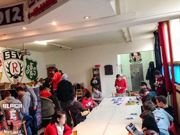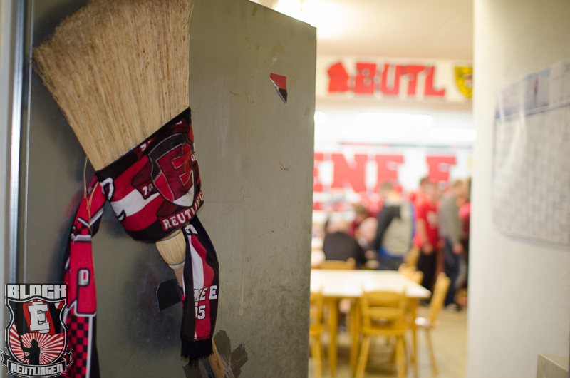 Für unsere Gruppe war es einer der ereignisreichen Tage der Hinrunde: Vor dem Spiel veranstalteten die jüngeren Mitglieder der Szene E einen Jugendtag mit der Jugend des CC97 und starteten mit einem Frühstück in den Tag, bevor man gemeinsam zum Stadion lief, wo es noch einen Vortrag über die Geschichte der Reutlinger Zaunfahnen für die jungen Stuttgarter zu hören gab.