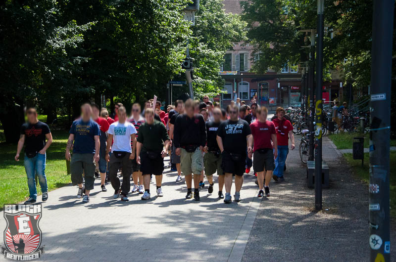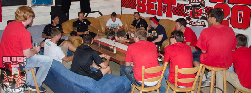Block E traf sich bereits am späten Nachmittag zum Grillen am Stadion, bevor mit den üblichen Vorbereitungen für das Spiel begonnen wurde. Das Intro bestand aus Fahnen, Doppelhaltern und Schals. Zwar nichts Besonderes, ist aber immer wieder schön anzuschauen.