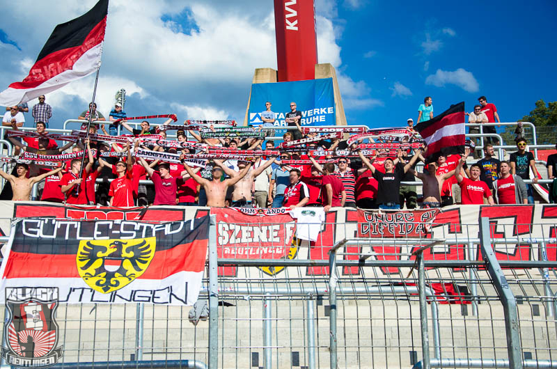 Leider gelang es nicht an unseren letzten Auftritt in Karlsruhe anzuknüpfen, sodass dieses Mal ein eher durchschnittlicher Auftritt im Gästeblock abgeliefert wurde. Bleibt zu hoffen, dass unsere Mannschaft am kommenden Freitag gegen Nöttingen nachlegen und somit eine kleine Euphoriewelle entfachen kann.