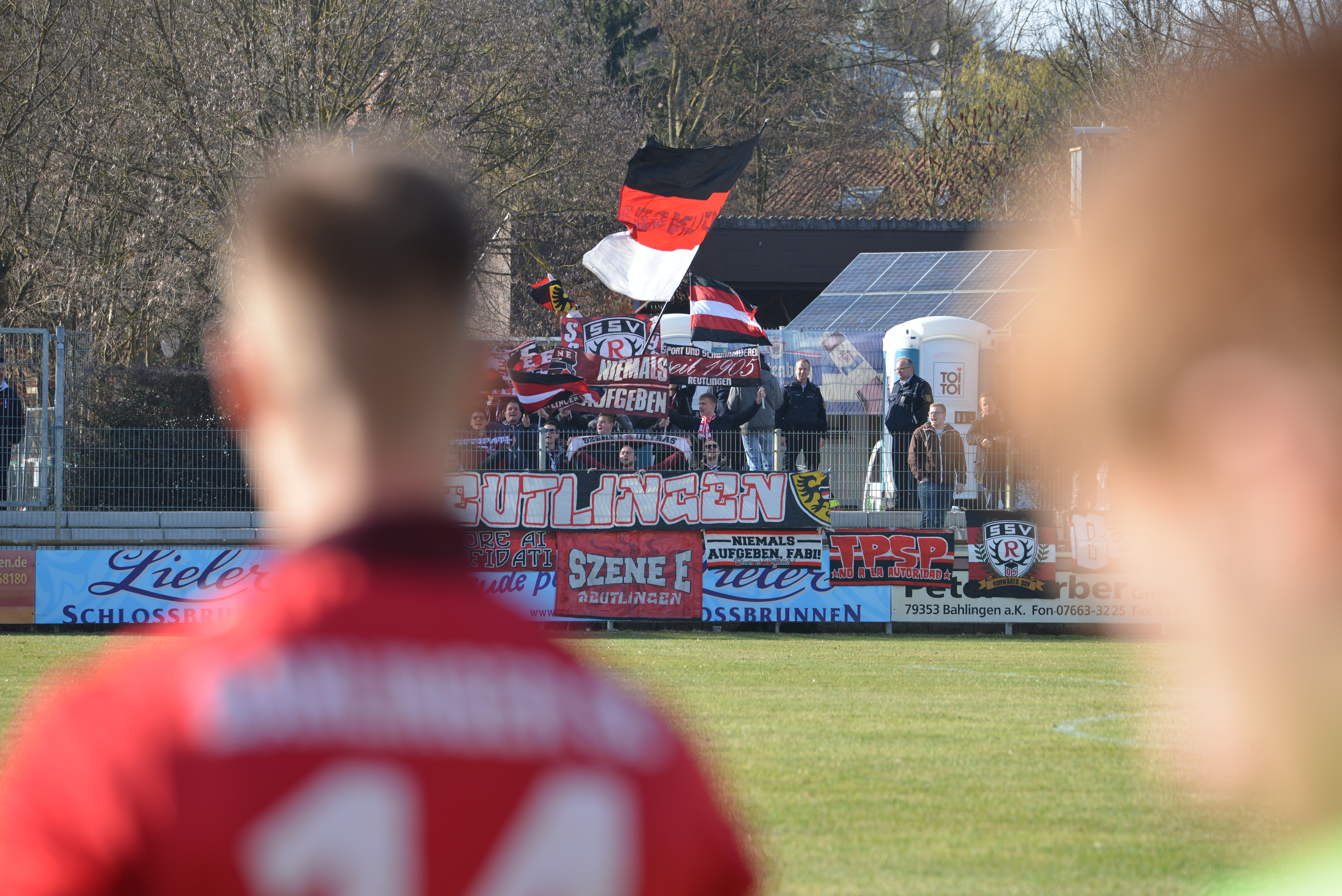 Mit reichlich Rückenwind aus drei siegreichen Ligaspielen in Folge ging es nach Balingen, wo unsere Mannschaft gegen die TSG Balingen im Viertelfinale des WFV-Pokals antrat. Unsere Gruppe reiste geschlossen mit Autos an, insgesamt fanden sich rund 150 hoffnungsvolle SSV-Fans in Balingen ein. Das Spiel begann schwungvoll, keine der beiden Mannschaften tastete sich zunächst ab, sondern spielten sofort energisch nach vorne. Nachdem unser SSV in der ersten Minuten eine Großchance der Balinger überstand, kamen unsere Jungs immer besser ins Spiel und auch das ein oder andere Mal gefährlich vor das Gehäuse der Balinger. Anschließend profitierten die Balinger nach einer Ecke von einer katastrophalen Abwehrarbeit unserer Mannschaft und gingen in Führung. Wenige Minuten später zeigte Balingen wie gute Konter gespielt werden und erhöhten auf 2:0. Zwar kämpfte sich unsere Mannschaft nochmal zurück ins Spiel, dass dabei aber etwas gebrauchbares abfällt verhinderten die Gegner mit reichlicher Unterstützung des Schiedsrichtergespanns. Dass hin und wieder ein Schiedsrichter nicht seinen besten Tag erwischt, kommt vor, aber dieser Schiedsrichter erreichte mit seinen Fehlentscheidungen ein neues Level und schenkte kurz nach der Halbzeitpause Balingen noch einen Elfmeter, der zum 3:0 führte. Damit war das Spiel jedoch noch nicht vorbei: Balingen erhöhte noch einmal sicherheitshalber auf 4:0, ehe unserer Mannschaft rund zehn Minuten vor Abpfiff noch der Ehrentreffer gelang. Aus sportlicher Sicht leider ein verdienter Sieg für die Balinger.