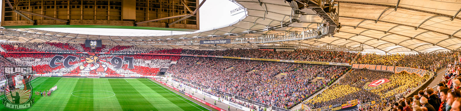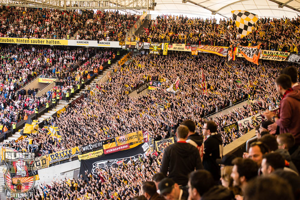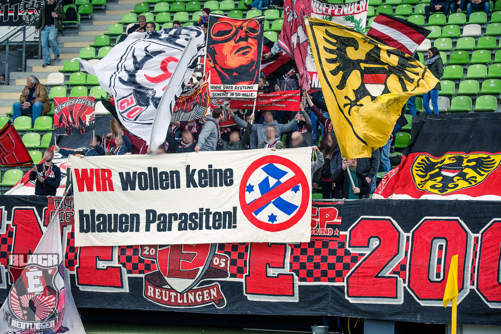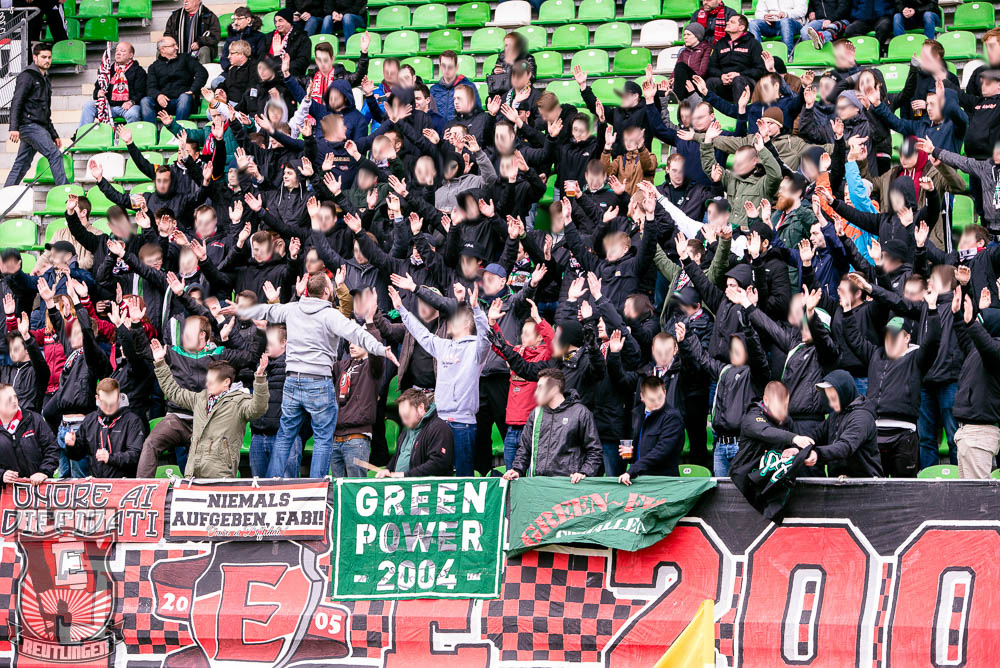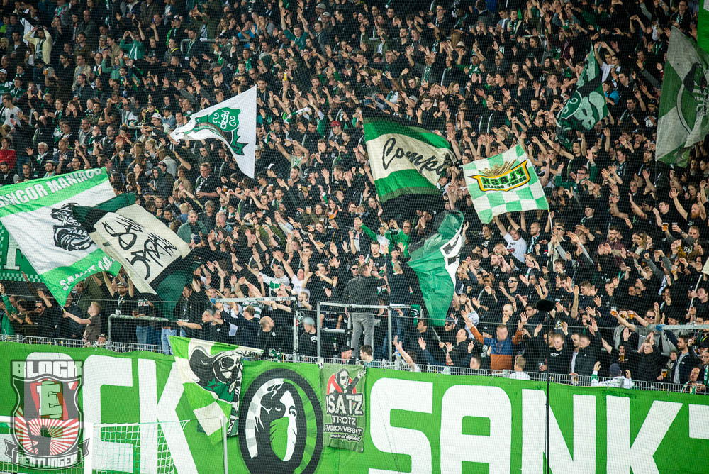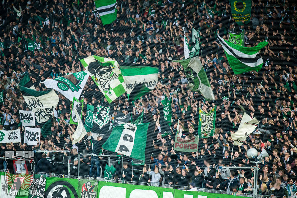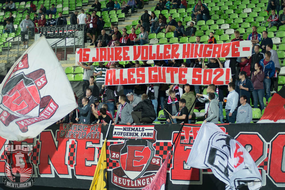 Der hohe Heimsieg geriet am vergangenen Samstag jedoch etwas in den Hintergrund. Schon seit einiger Zeit stand fest, dass uns bei diesem Spiel zahlreiche Freunde aus St. Gallen unterstützen werden. So stand dieser Tag ganz im Zeichen unserer Freundschaft zur Fanszene des FC St. Gallen. Passend dazu fertigten wir im Vorfeld eine Choreographie an und organisierten ein kleines Programm. Letztlich unterstützten uns rund 80 Ultras von allen relevanten Grupppen des Espenblocks und hatten somit ihren Anteil an der wohl lautesten ersten Halbzeit der jüngeren Vergangenheit. In der zweiten Halbzeit wurde unser Support zwar etwas schwächer, hielt sich allerdings immer noch in einem akzeptablen Bereich. Außerdem gab es in der zweiten Halbzeit noch ein Spruchband für unsere Stuttgarter Freunde zu sehen, die in der vergangenen Woche ihr zwanzigjähriges Bestehen feiern durften.
