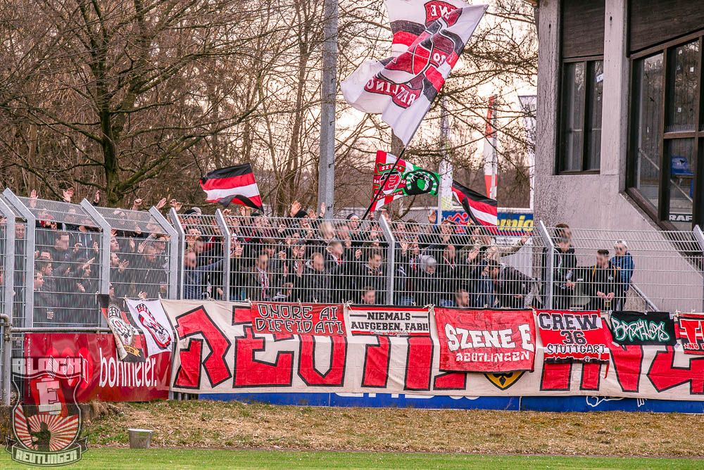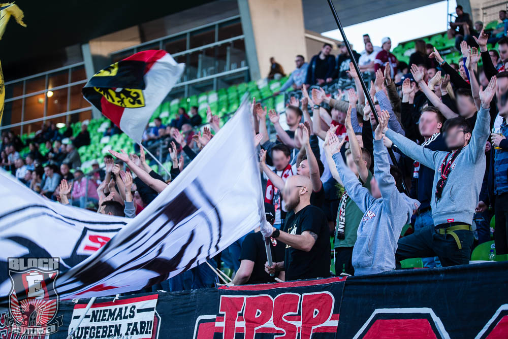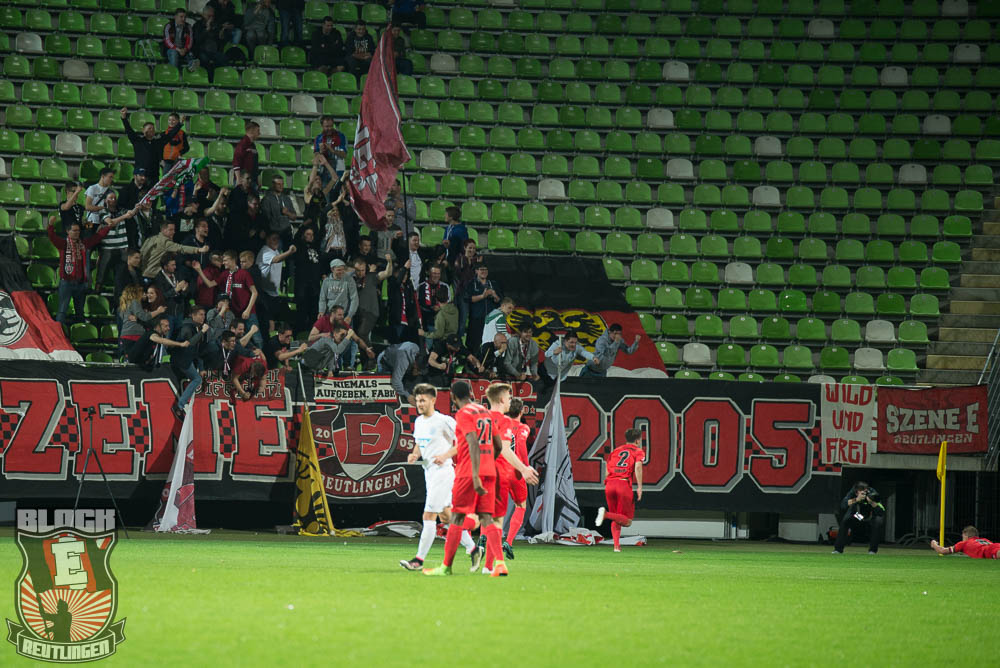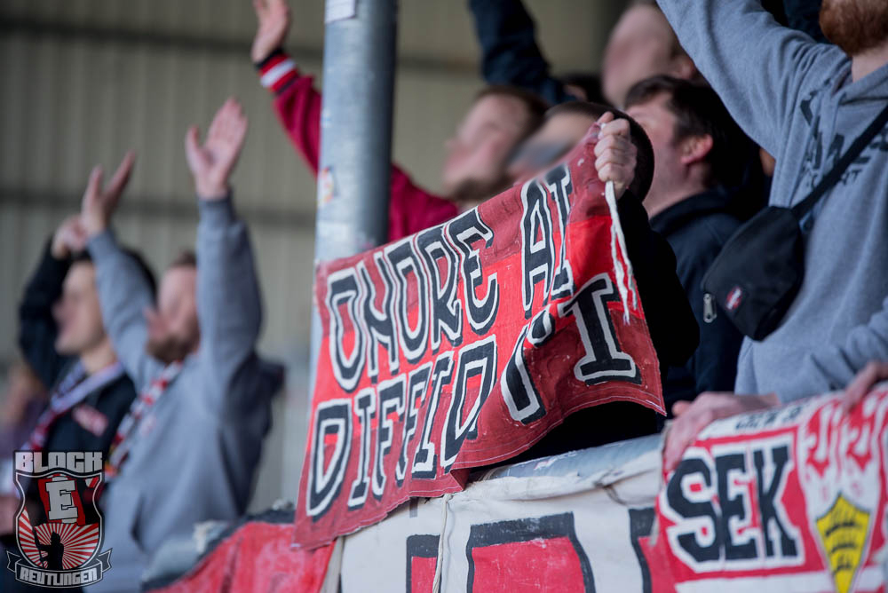 Dem Spielgeschehen zum Trotz legten die rund 30 am Support interessierten Leute im Gästeblock einen, unterm Strich, ordentlichen Auftritt hin. Dabei war das „All die Jahre Berg- und Talfahrt“-Lied das am emotionalsten und am lautstärksten vorgetragene, weil es einfach wieder einmal perfekt in die sportliche Situation passte.