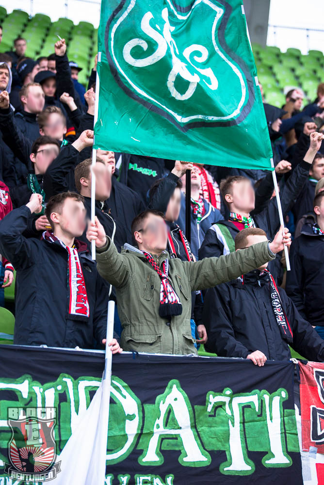 Block E war an diesem Tage mit rund 60 Ultras gefüllt. Diese legten einen ordentlichen ordentlichen Auftritt hin, der gegen Ende jedoch etwas schlechter wurde, was jedoch auch auf den ernüchternden Spielverlauf zurückzuführen ist.