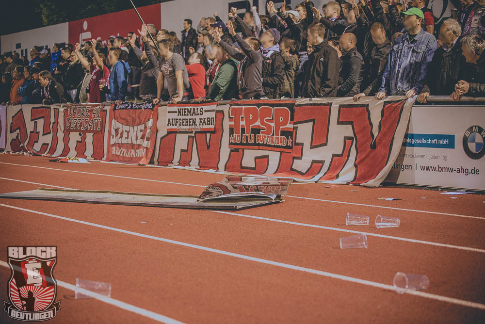 Am Support beteiligten sich an diesem Tage rund 50-60 Ultras. Häufiger gelang es jedoch auch die anderen mitgereisten SSV-Fans zum Singen zu animieren, dann wurde eine gute Lautstärke erreicht. Diese Momente nahmen natürlich ab je höher der Rückstand wurde. Insgesamt war es dennoch ein ordentlicher Auftritt unsererseits. Zwar wurde der Support nach dem 3:0 vorerst eingestellt, die letzten zehn Minuten wurden jedoch singend verbracht, ehe wir uns mit einem lauten „All die Jahre“ aus dem Pokal verabschiedeten.