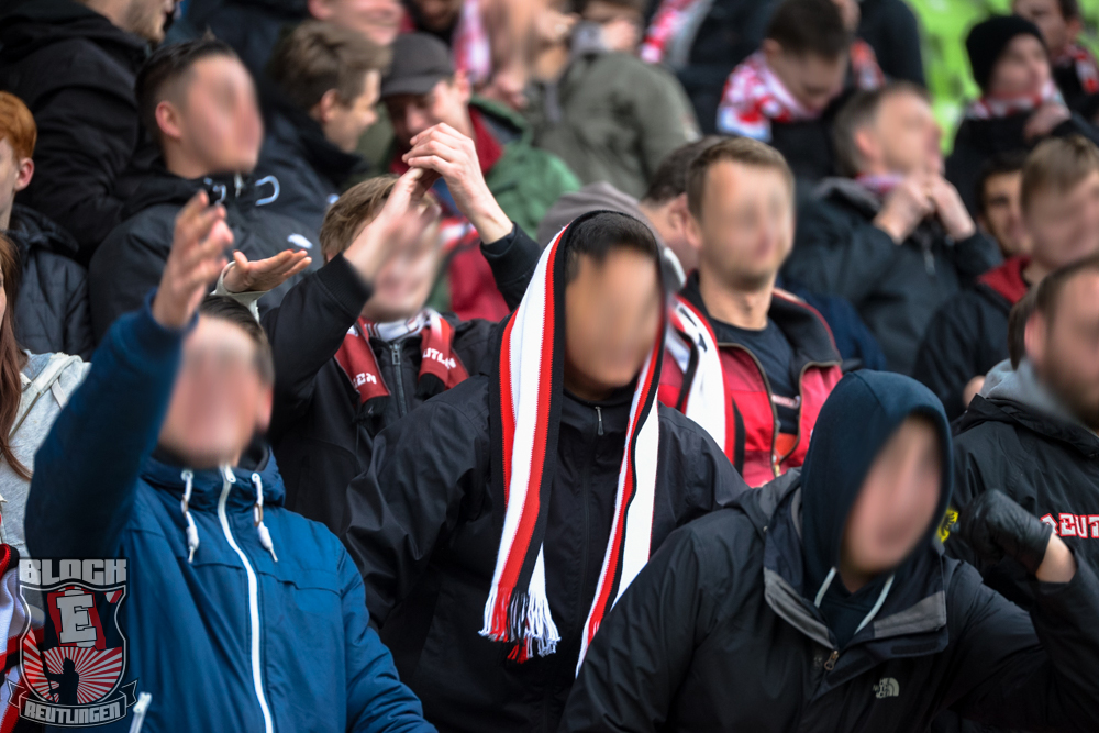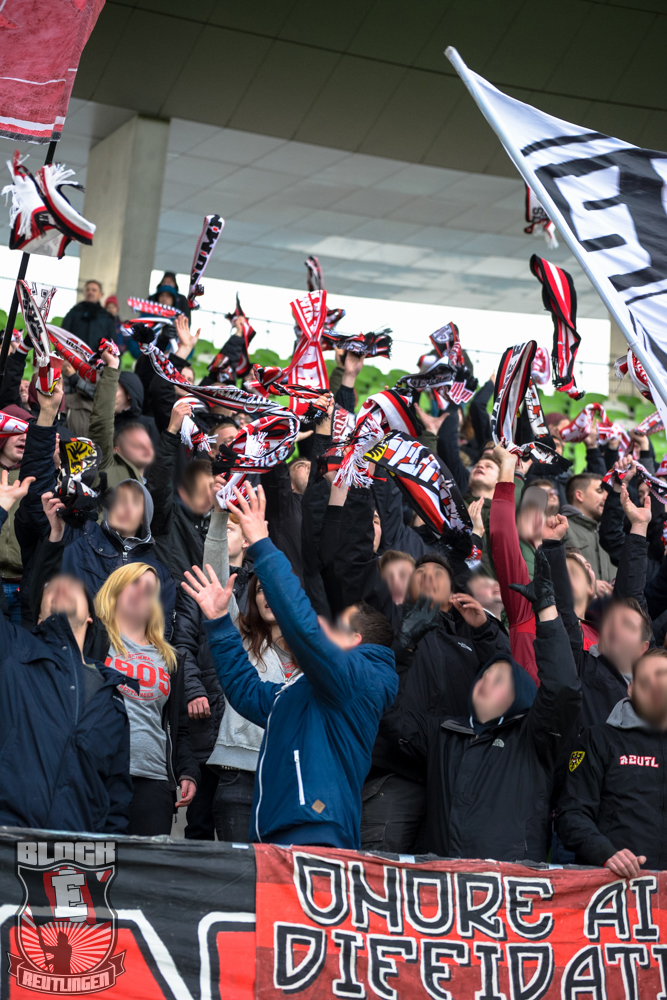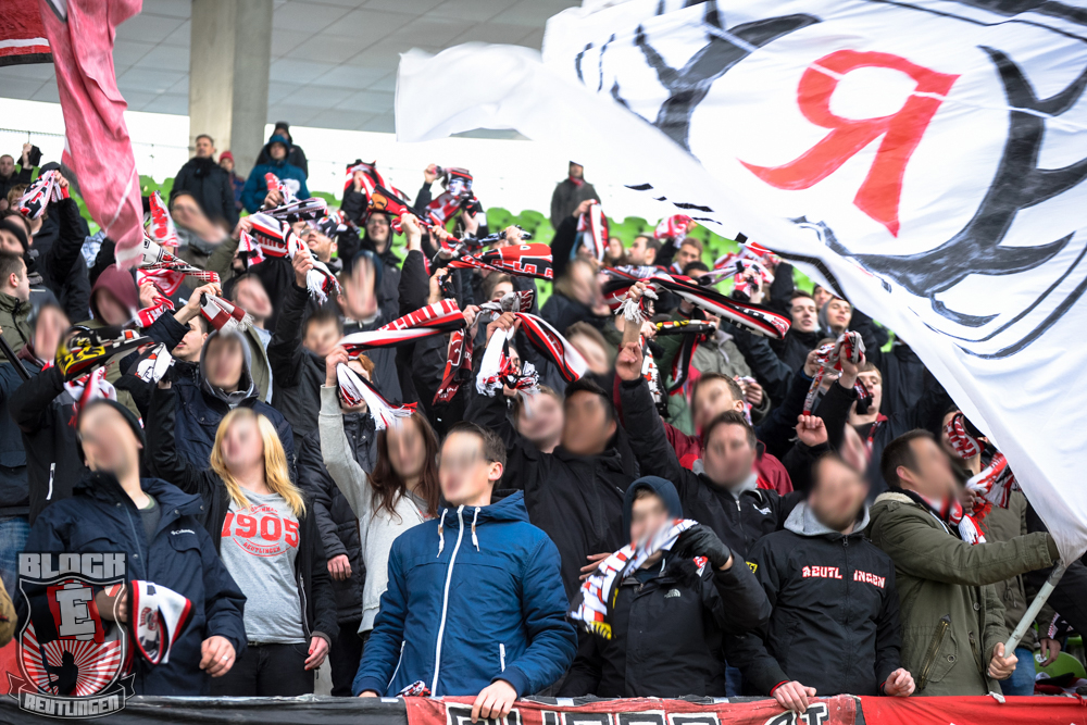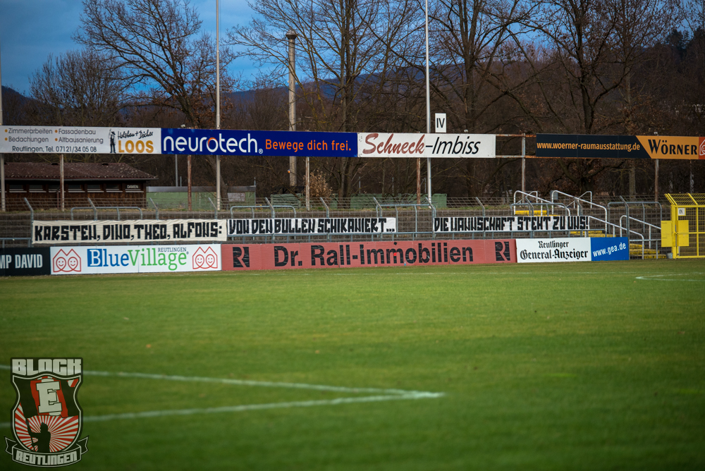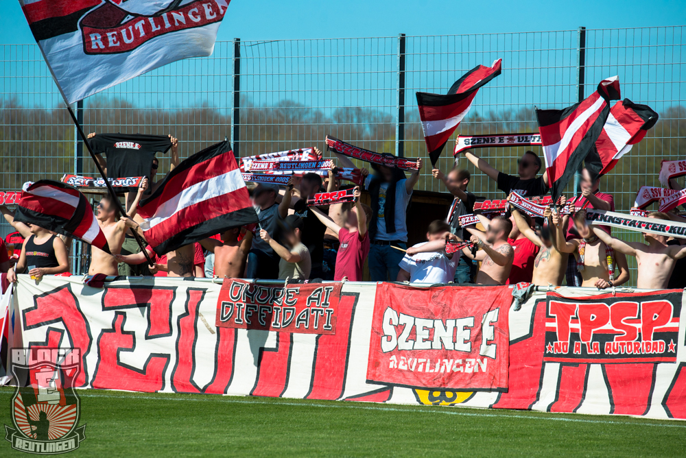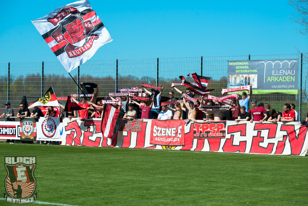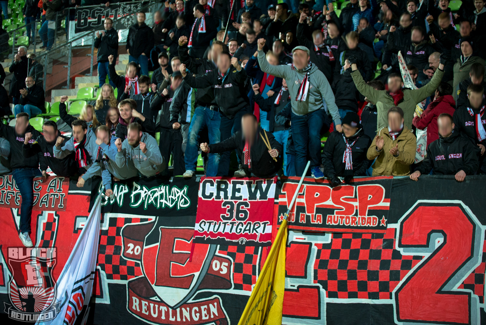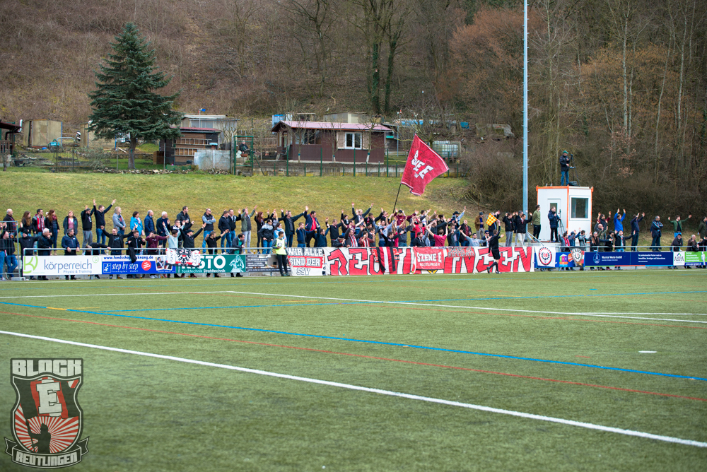 Auch Block E wusste an diesem Tage erneut zu gefallen. Nachdem wir am vergangenen Samstag in Oberachern den derzeit größten Bummsground unserer Liga ordentlich gerockt haben, konnten wir an diesem Tage mit passenden Gesängen und einem kleinen, aber feinen Tifo auch diesem Auswärtssieg einen schönen Rahmen verleihen.