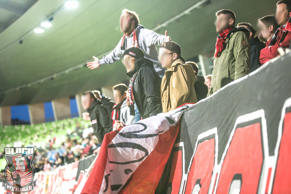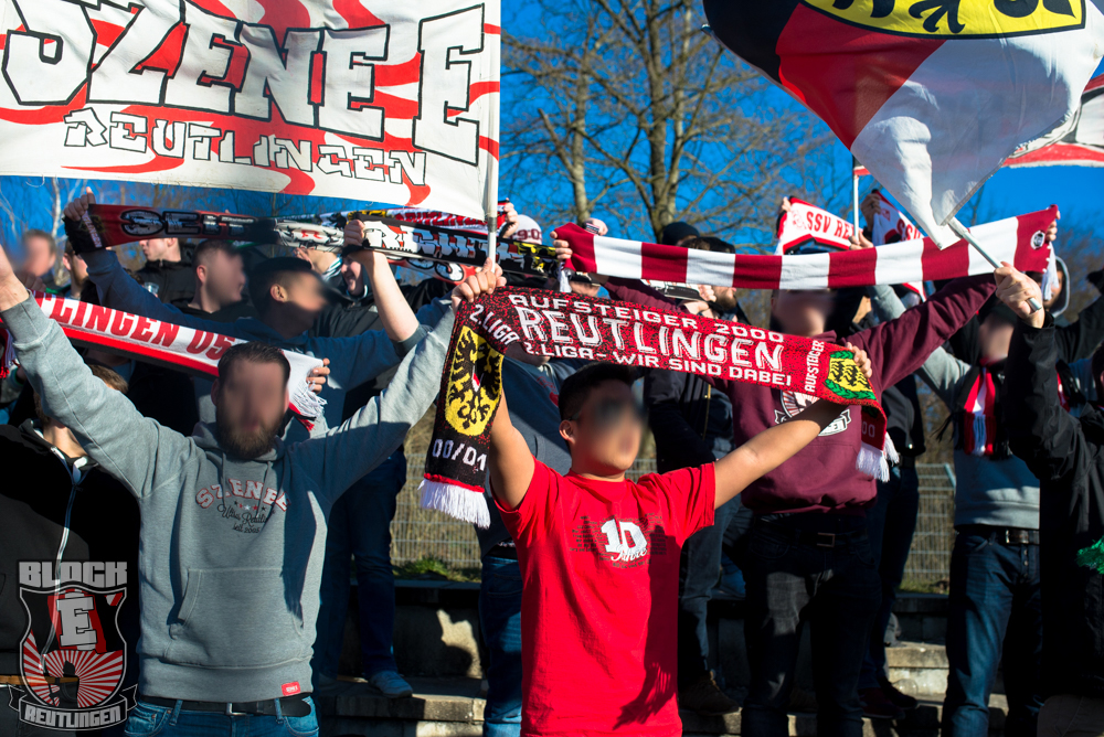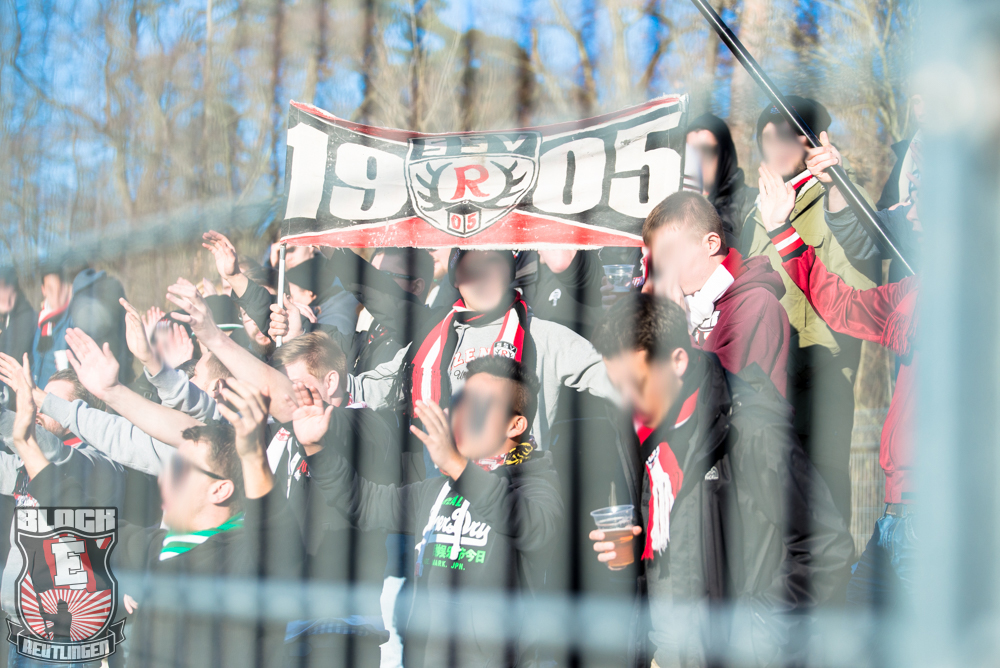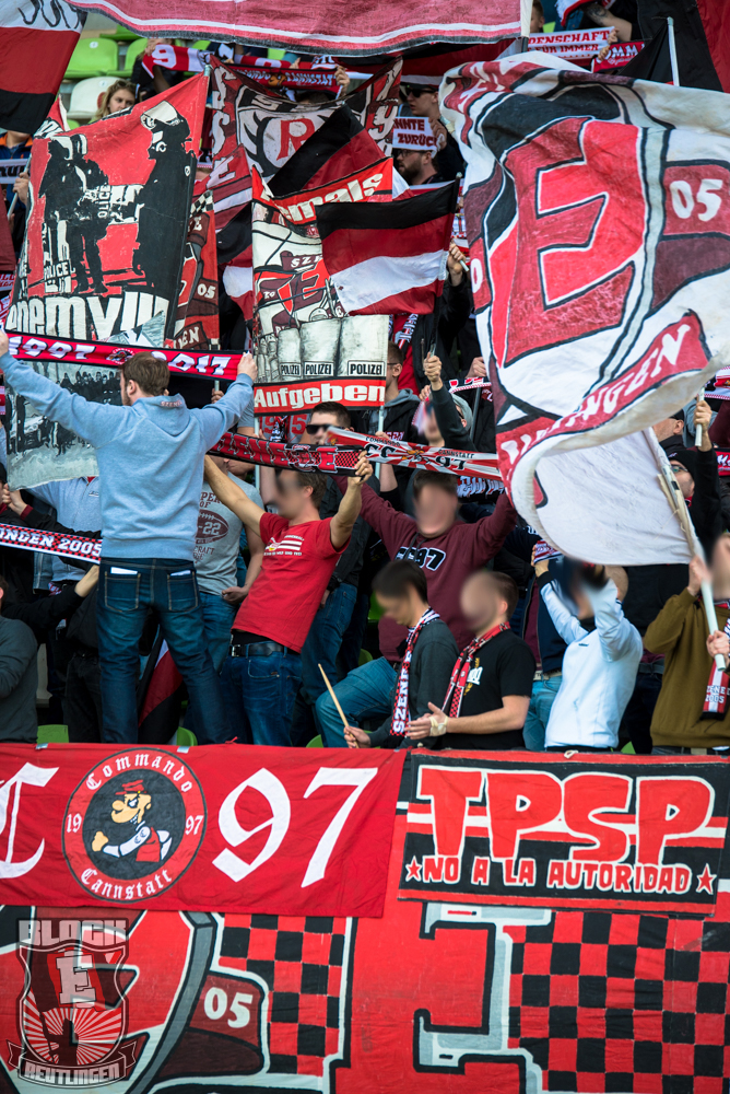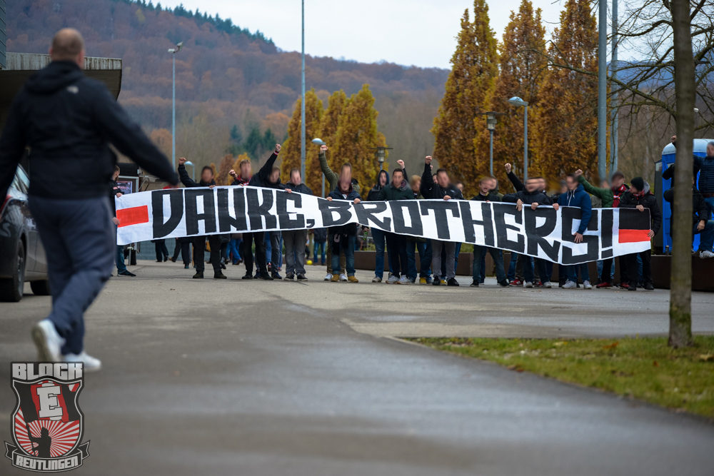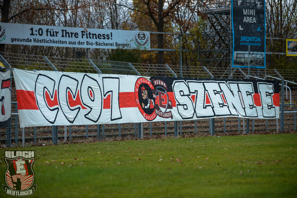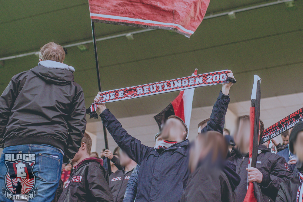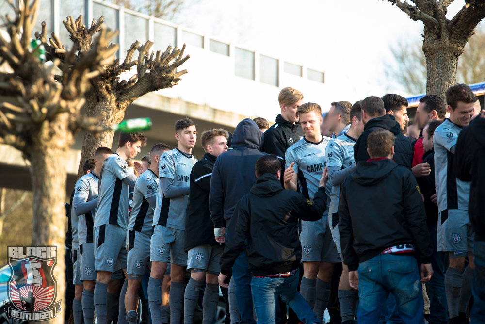 Auch Block E wusste an diesem Tage erneut zu gefallen. Nachdem wir am vergangenen Samstag in Oberachern den derzeit größten Bummsground unserer Liga ordentlich gerockt haben, konnten wir an diesem Tage mit passenden Gesängen und einem kleinen, aber feinen Tifo auch diesem Auswärtssieg einen schönen Rahmen verleihen.