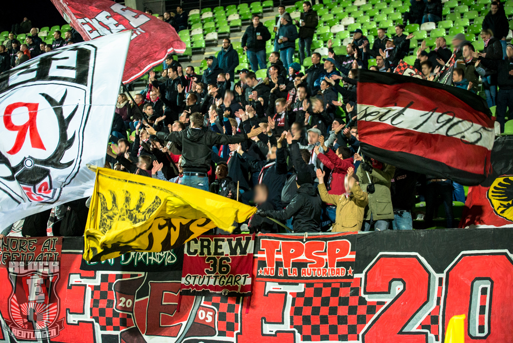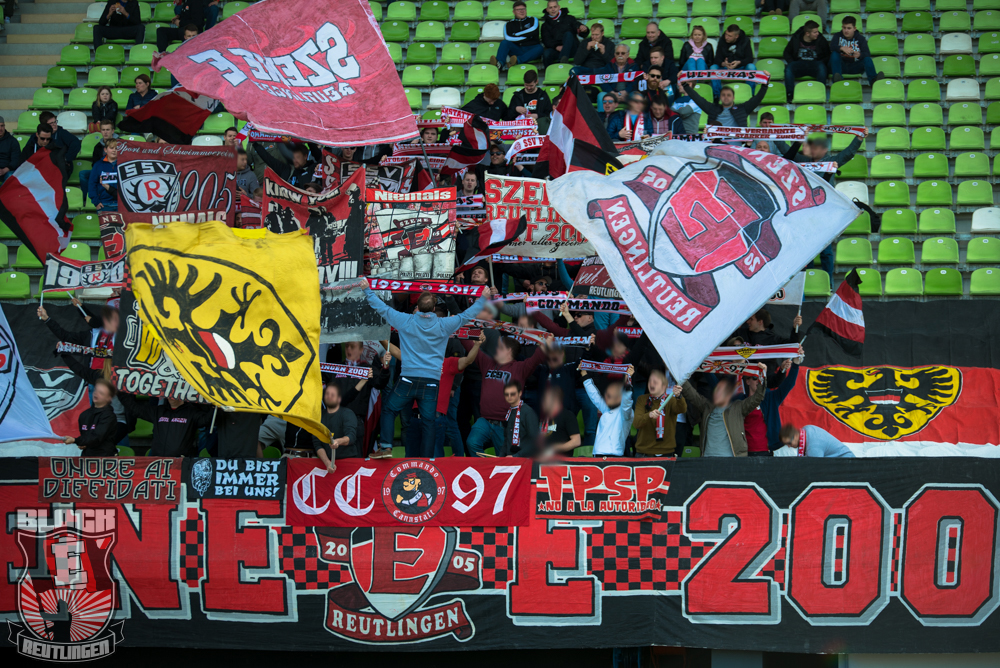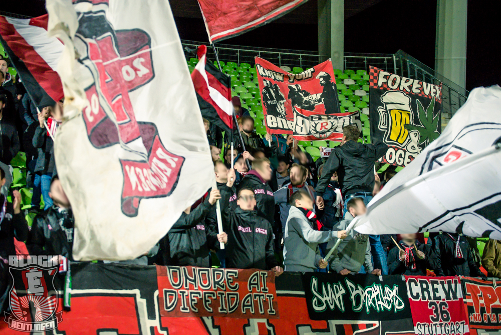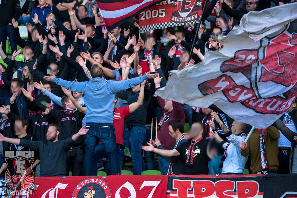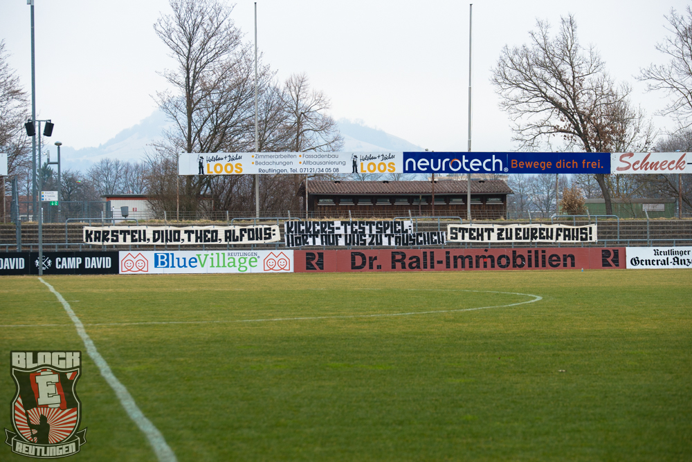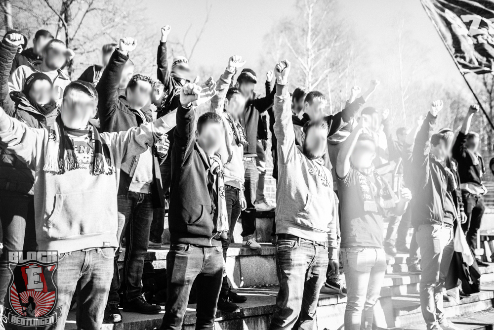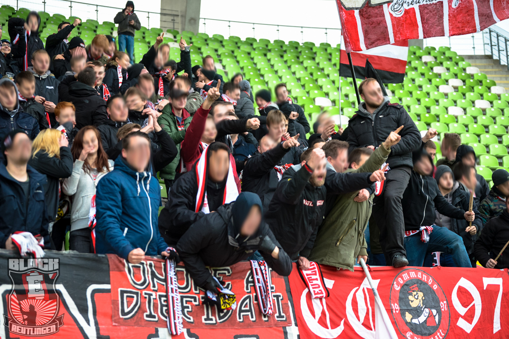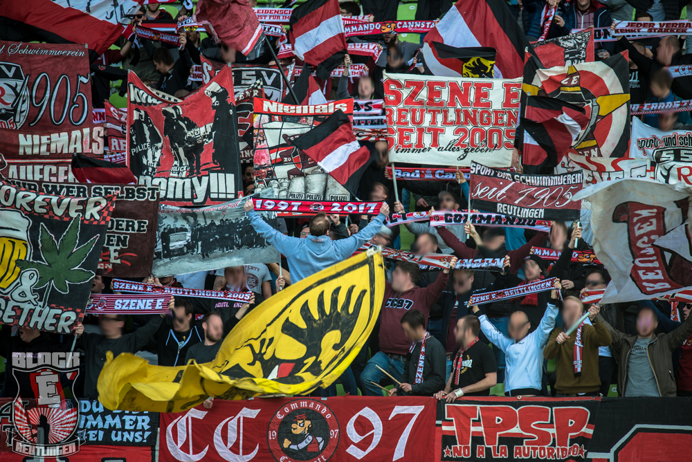 Auch Block E wusste an diesem Tage erneut zu gefallen. Nachdem wir am vergangenen Samstag in Oberachern den derzeit größten Bummsground unserer Liga ordentlich gerockt haben, konnten wir an diesem Tage mit passenden Gesängen und einem kleinen, aber feinen Tifo auch diesem Auswärtssieg einen schönen Rahmen verleihen.
