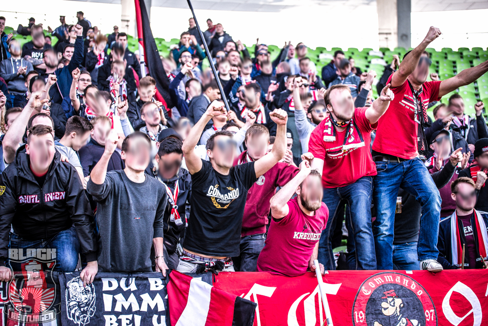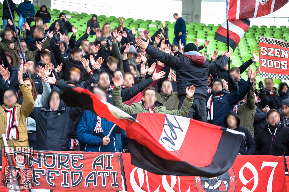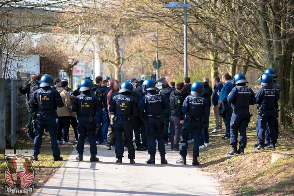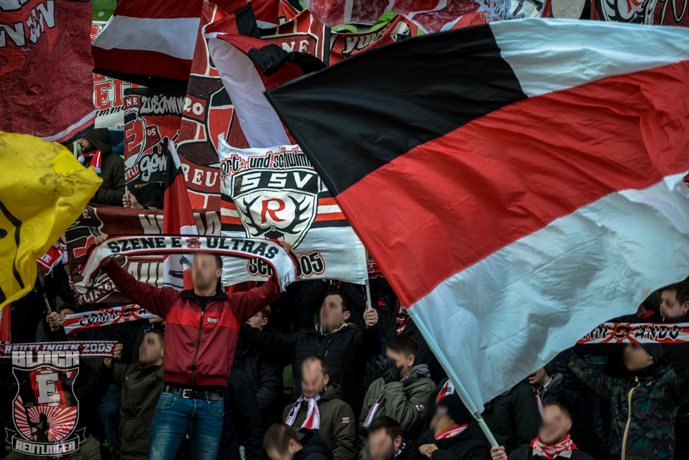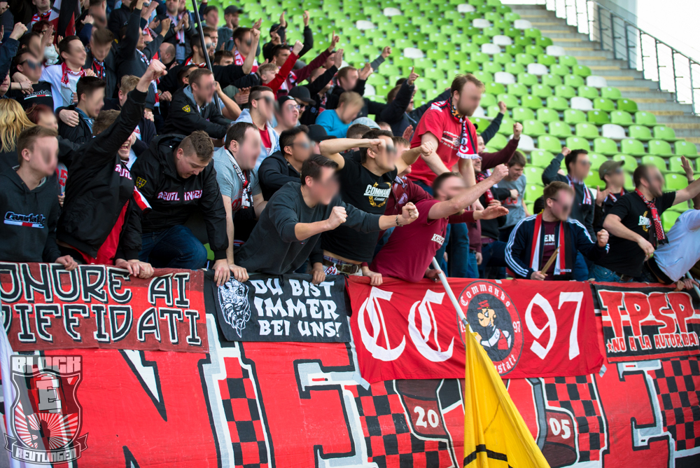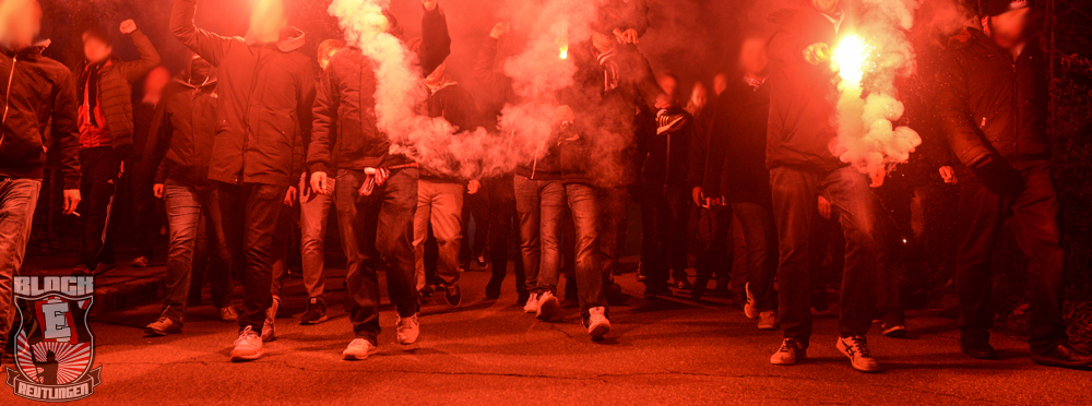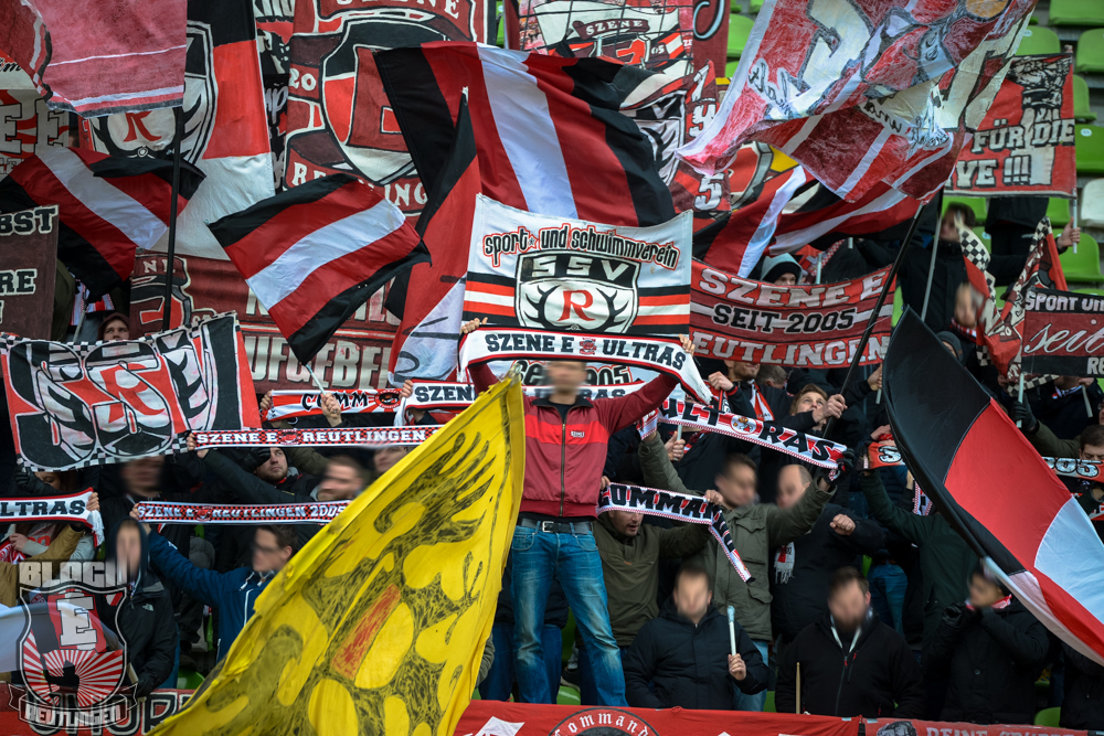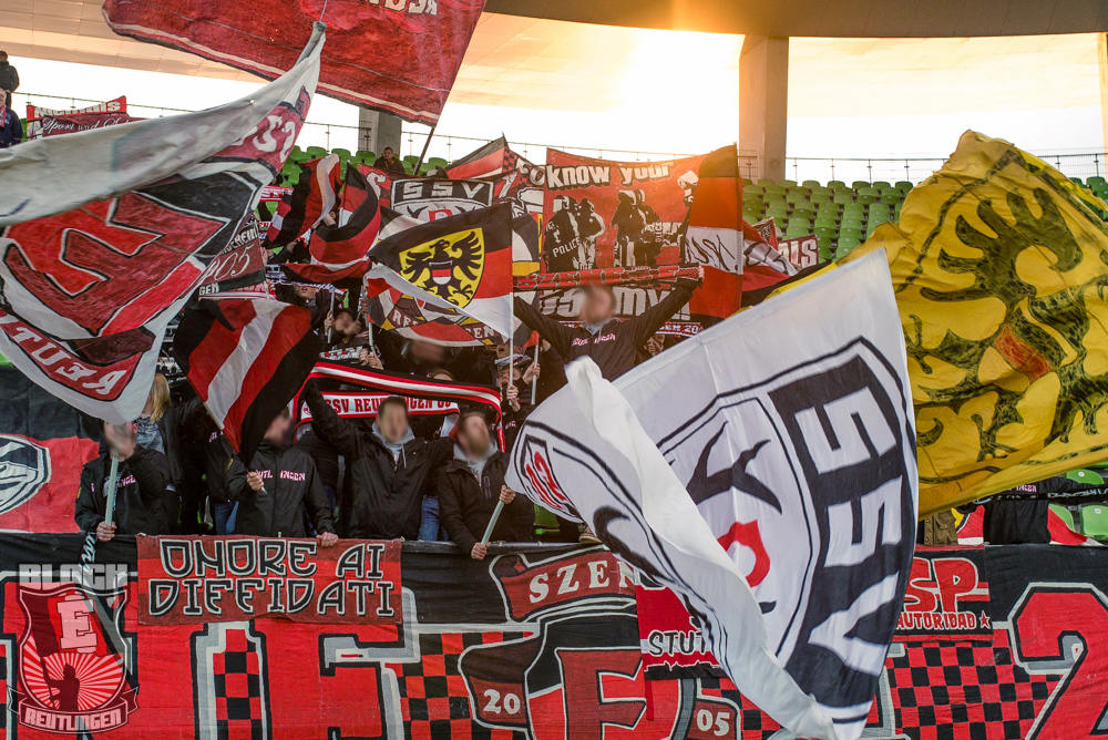 Auch Block E wusste an diesem Tage erneut zu gefallen. Nachdem wir am vergangenen Samstag in Oberachern den derzeit größten Bummsground unserer Liga ordentlich gerockt haben, konnten wir an diesem Tage mit passenden Gesängen und einem kleinen, aber feinen Tifo auch diesem Auswärtssieg einen schönen Rahmen verleihen.
