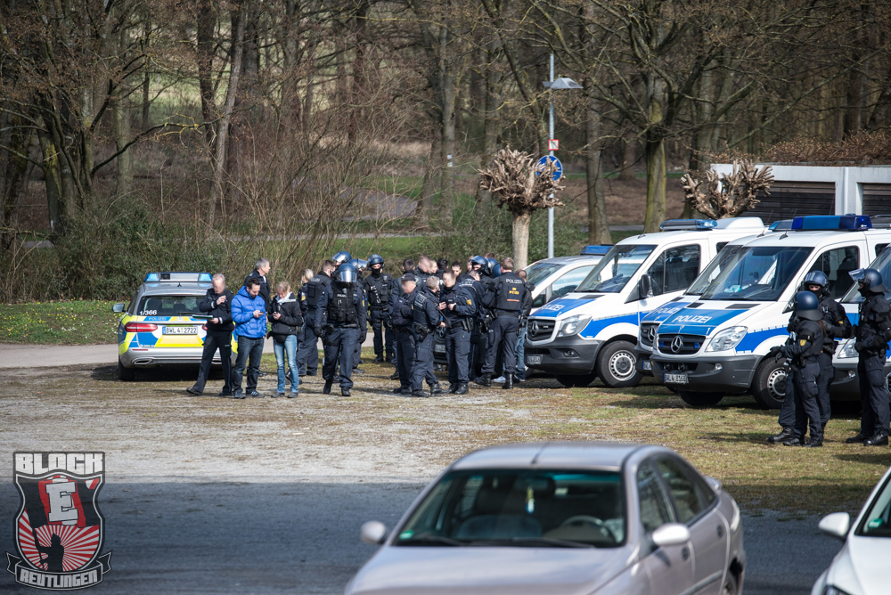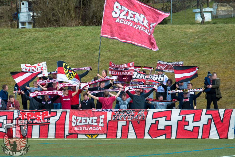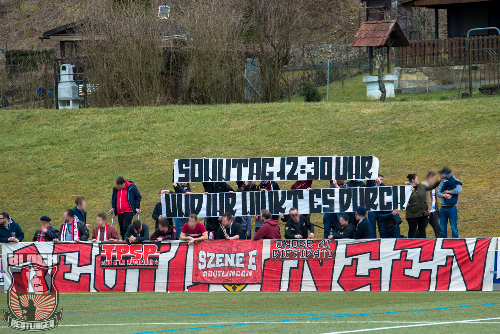Bei bestem Sonnenschein ging es für unsere kleine Autokolonne an diesem Dienstagnachmittag nach Ravensburg. Aufgrund der frühen Anstoßzeit verschoben wir unsere Abfahrtszeit möglichst weit nach hinten und so wurde es zeitlich ziemlich eng. Letztlich kamen wir kurz vor Anpfiff am Wiesental-Stadion an, flaggten schnell an und dann begann auch schon die Partie.