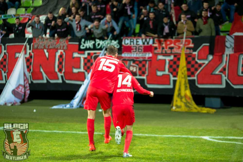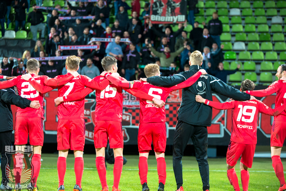 Recht schnell wurde klar, dass das heute ein hart umkämpftes Spiel wird, aber unsere Mannschaft hält ja bekannterweise seit ein paar Wochen bei solchen Spielen sehr gut dagegen, lässt sich nicht verunsichern und ging, wie soll es auch anders sein, durch einen vorteilhaften Elfmeter in der 37.Minute in Führung. Dieser Treffer sollte an diesem Abend ausreichen, um die drei Punkte nach Reutlingen zu entführen. Unsere Mannschaft ist nun seit zehn Spielen ungeschlagen und bereitet uns derzeit viel Freude.