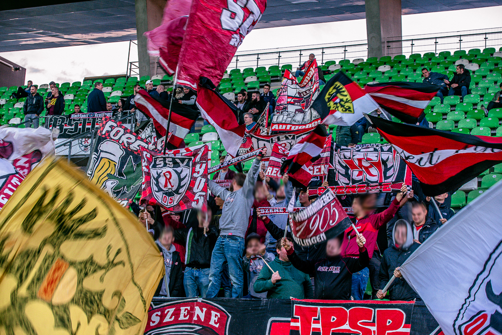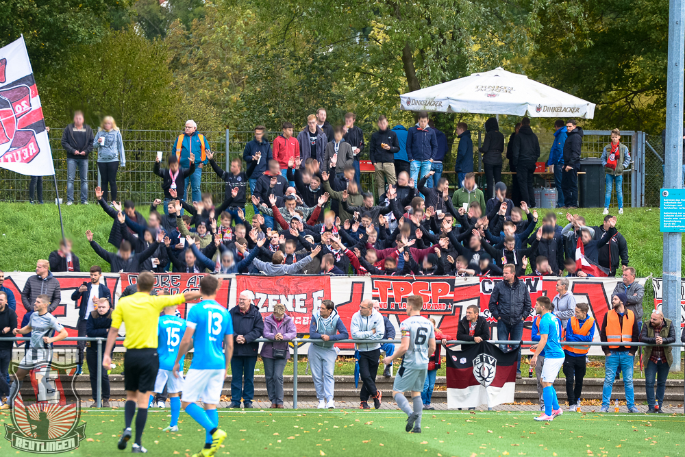 Zu Beginn der zweiten Halbzeit schaffte es dann aber erfreulicherweise sowohl wir als auch unsere Mannschaft noch einmal aufzudrehen. Wir konnten mithilfe des Daches immer wieder lautstarke und minutenlang andauernde Akzente setzen. Es wurde gepogt, gepöbelt und getanzt. Also alles was ein guter Auftritt des Gästemobs bei einem miesen Spiel mit schlechtem Wetter braucht. Auch die Mannschaft ließ sich wie erwähnt nicht lumpen und erzielte drei Minuten nach Wiederanpfiff den Anschlusstreffer und ließ uns wenigstens auf einen Punkt gegen den Tabellendritten hoffen. Dieser wäre zwar absolut verdient gewesen, doch unser SSV brachte es eben wieder nicht fertig den Ball irgendwie erneut über die Linie zu bringen, sodass unsere einst so auswärtsstarke Mannschaft nun die dritte Auswärtsniederlage in Serie verzeichnen musste. Der Abstiegskampf hat uns wieder…
