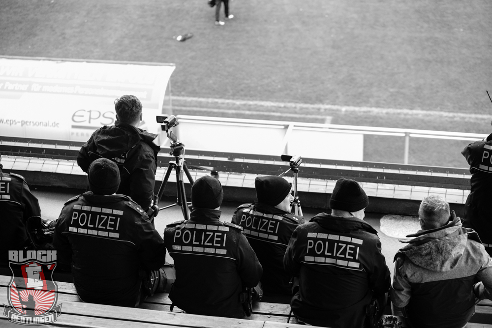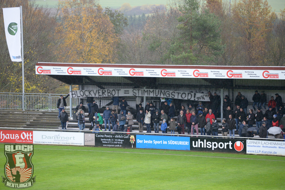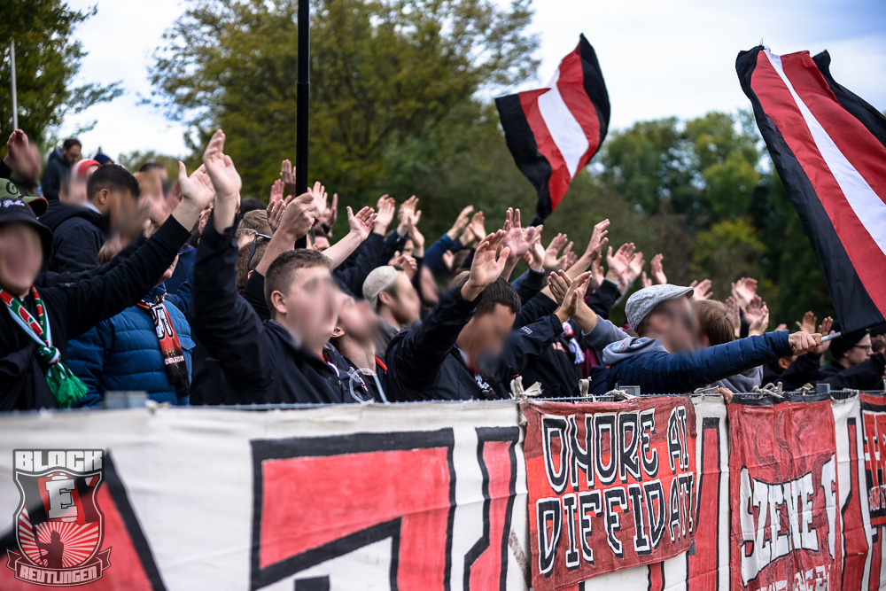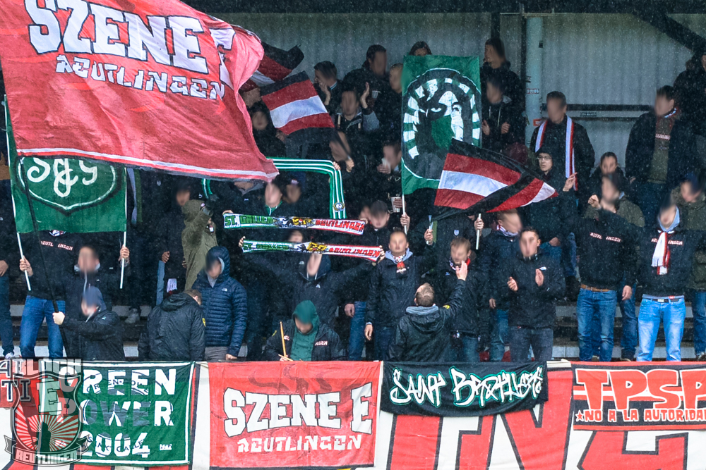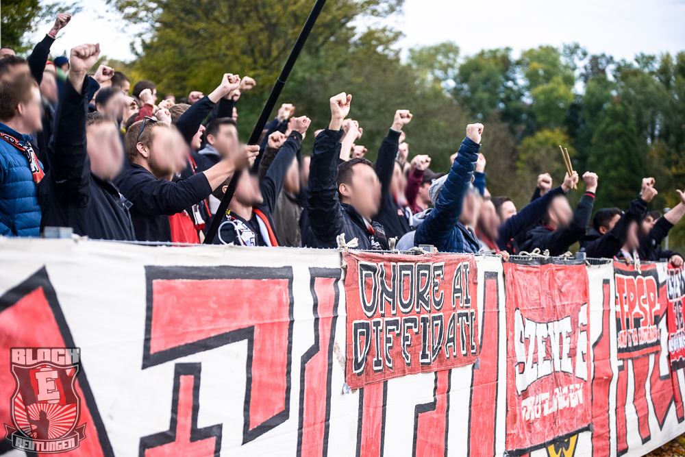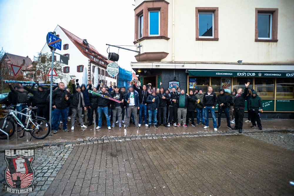 Unsere Auswärtsspiele in Villingen sind in den vergangenen Jahren nicht nur wegen des traditionellen Freibiers nach Abpfiff in Erinnerung geblieben, sondern auch, weil Villingen Möglichkeiten bietet, den Spieltag mit einem besonderen Highlight zu gestalten. Außerdem hatten sich unsere Brüder aus der Ostschweiz angekündigt, sodass wir uns letztlich entschieden die Zeit vor Anpfiff in einer bereits bekannten Lokalität gemeinsam zu verbringen. Als die Einlasskontrollen ohne nennenswerte Vorfälle passiert wurden ging es dann auch relativ zügig los. Zum Intro war es für uns an der Zeit mal wieder an ein trauriges Ereignis zu erinnern. Der tragische Mord an den Laziali Gabriele Sandri jährte sich nun zum zehnten Mal. Der Gästeblock startete lautstark und entschlossen in die Partie, konnte dieses Niveau jedoch nicht halten. Erwähnenswert sind ebenfalls unsere Grüße an Dietmar Hopp, den wir freundlichst an die Welt erinnerten, in die er sich nach bestem Wissen und nicht vorhandenem Gewissen eingekauft hat.