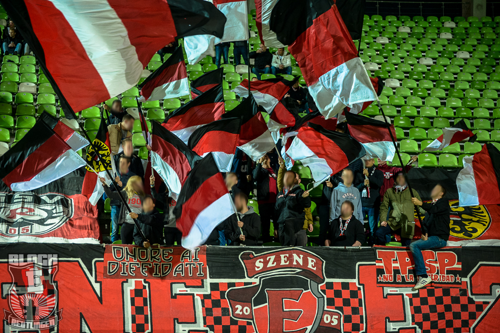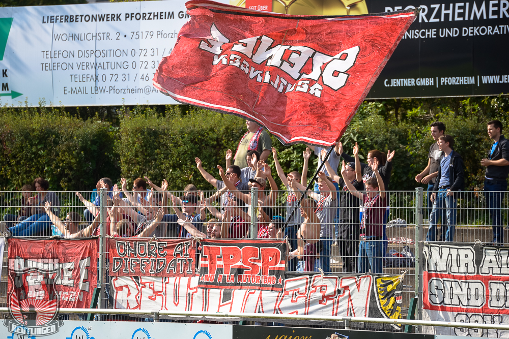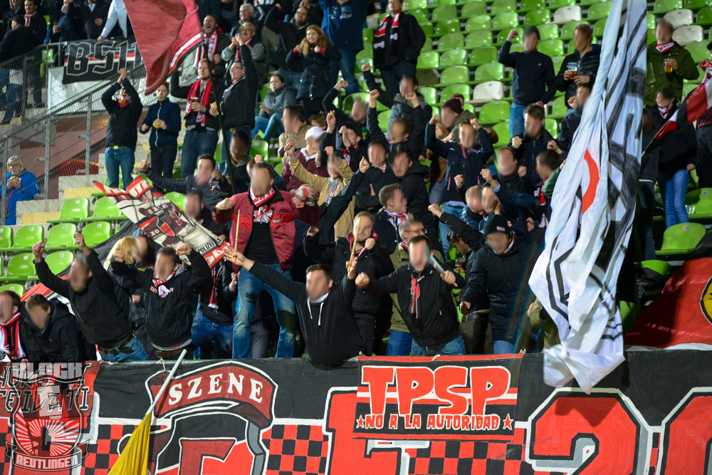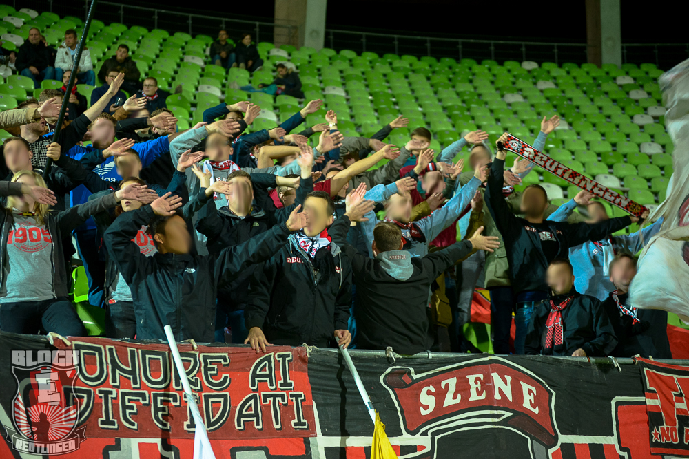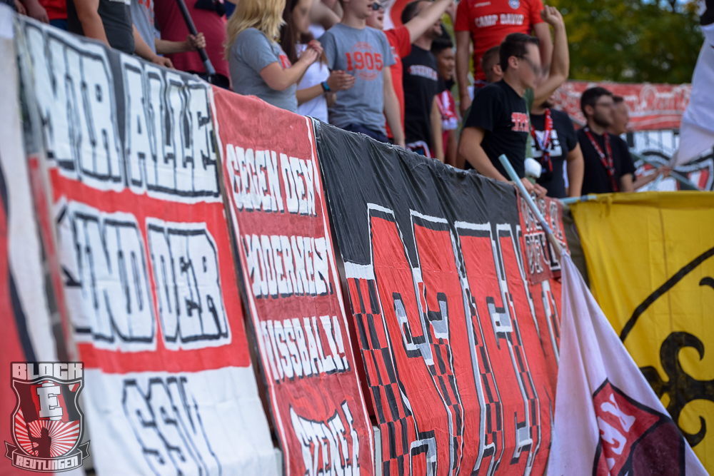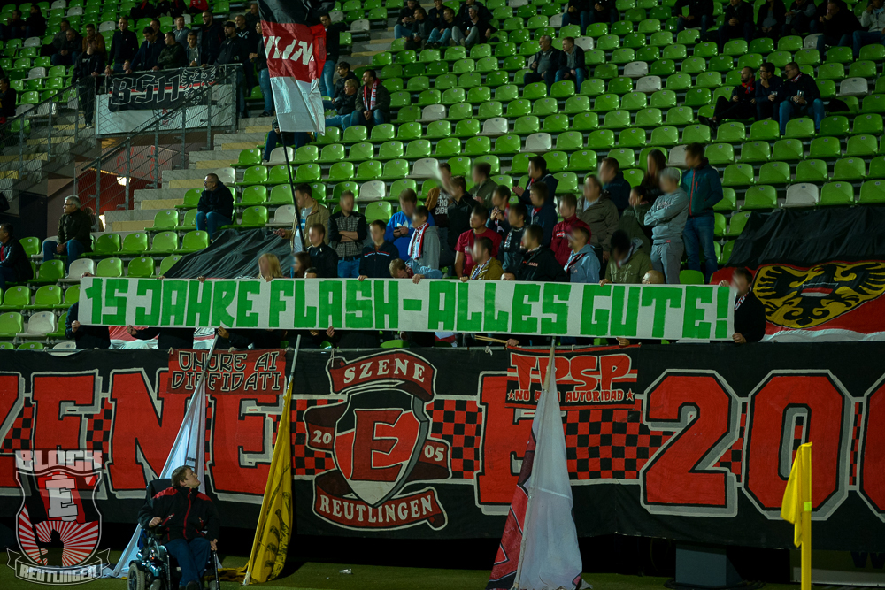 Unsere Auswärtsspiele in Villingen sind in den vergangenen Jahren nicht nur wegen des traditionellen Freibiers nach Abpfiff in Erinnerung geblieben, sondern auch, weil Villingen Möglichkeiten bietet, den Spieltag mit einem besonderen Highlight zu gestalten. Außerdem hatten sich unsere Brüder aus der Ostschweiz angekündigt, sodass wir uns letztlich entschieden die Zeit vor Anpfiff in einer bereits bekannten Lokalität gemeinsam zu verbringen. Als die Einlasskontrollen ohne nennenswerte Vorfälle passiert wurden ging es dann auch relativ zügig los. Zum Intro war es für uns an der Zeit mal wieder an ein trauriges Ereignis zu erinnern. Der tragische Mord an den Laziali Gabriele Sandri jährte sich nun zum zehnten Mal. Der Gästeblock startete lautstark und entschlossen in die Partie, konnte dieses Niveau jedoch nicht halten. Erwähnenswert sind ebenfalls unsere Grüße an Dietmar Hopp, den wir freundlichst an die Welt erinnerten, in die er sich nach bestem Wissen und nicht vorhandenem Gewissen eingekauft hat.