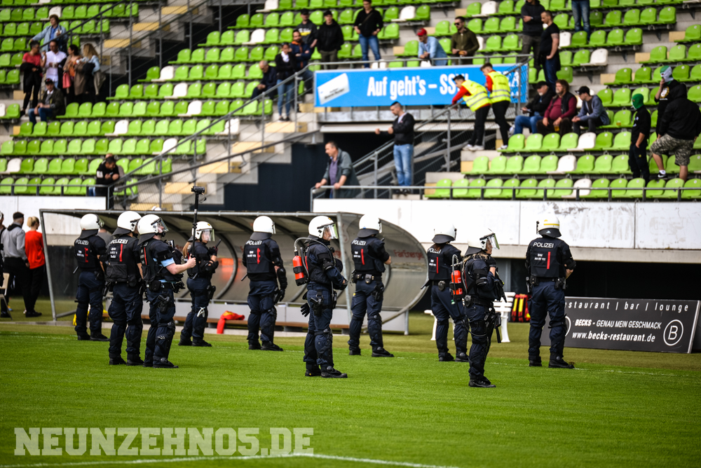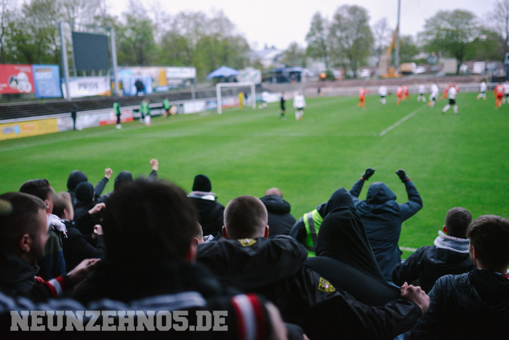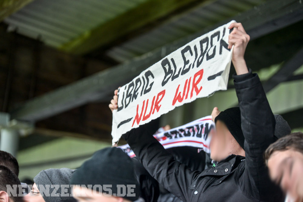 Dieses Spiel war wieder eins der übleren Sorte. Klar, 1:3 klingt wie bitter verloren, aber allein die Tatsache, wie das Tor für uns gefallen ist, ist eine wahre Frechheit. Wer früher Pinball auf dem PC gespielt hat, kann sich bildlich vorstellen, wie der Ball wahllos durch den Sechzehner geflogen ist, bis er durch einen glücklichen Zufall den Weg in die Maschen fand. Zu der miserablen Leistung auf dem Feld, kommt an diesem Tag noch die erschreckend geringe Motivation unsererseits. Durchaus verständlich, aber dennoch traurig. So war es auch nicht verwunderlich, dass wir Mitte der zweiten Halbzeit den Support einstellten und uns schweigend das Desaster auf dem Platz mit anschauen mussten.