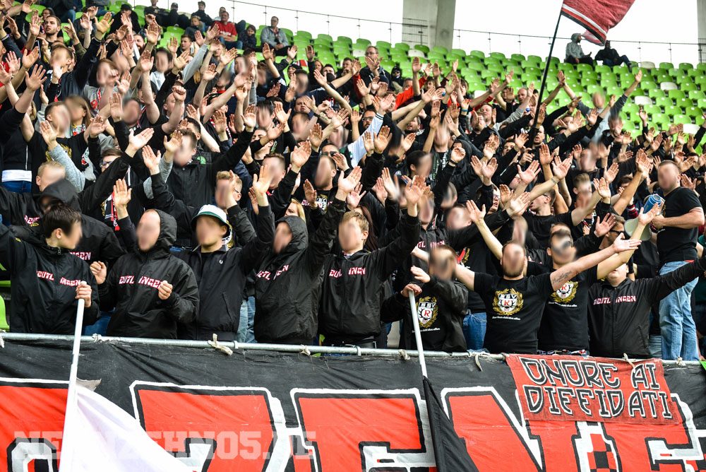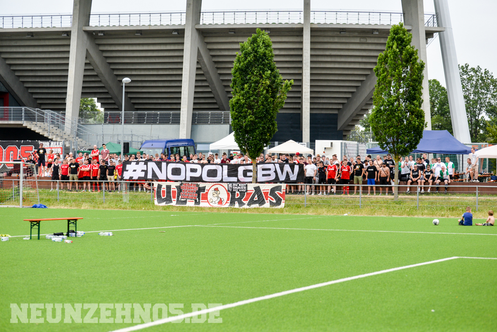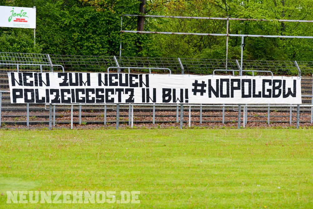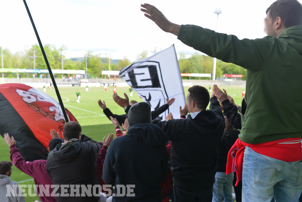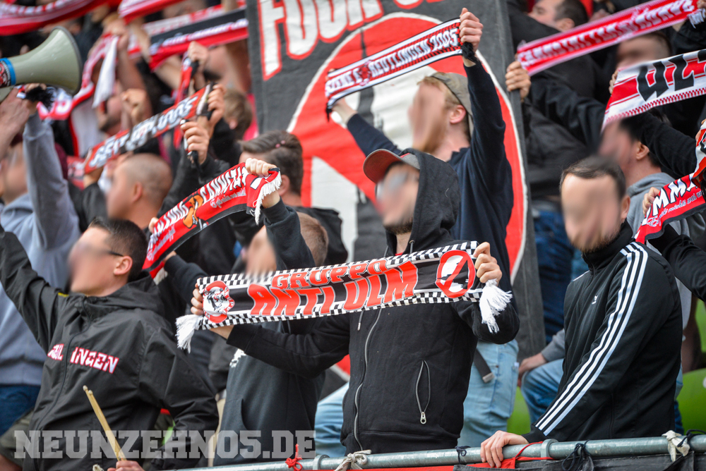 Im Stadion angekommen, konnten wir schnell feststellen, dass der Verein in Oberachern endlich auch im Gästeblock grillen durfte und dieses Jahr keiner den Lieferservice mit 30 Würsten spielen musste. Nachdem unsere Fahnen aufgehängt waren und die Mannschaft aufgewärmt war, gab es vor dem Weg in die Kabine noch eine Ansprache bezüglich des Pokalderbys. Der Mannschaft wurde eine „Gruppo Anti Ulm“ Fahne übergeben, die sie sich in die Kabine hängen soll, um sich der Wichtigkeit des Spiels bewusst zu werden, sich heiß zu machen und einen Teamgeist zu entwickeln, um sich mit stolzer Brust der Partie entgegen zu stellen. Zum Spiel selbst kann man erst einmal sagen, dass es eine, für die Verhältnisse der letzten Wochen, gute erste Halbzeit war. Zur Halbzeit immerhin ein 0:0. Stimmungstechnisch war das Ganze auch noch ausbaufähig, aber ganz okay. In der zweiten Halbzeit hatte die Mannschaft offenbar keine Lust mehr und gab sich der Niederlage hin. Da absolut gar keine Gegenwehr mehr kam, machte Oberachern ohne große Probleme vier Tore. Der provokante Torjubel in Richtung Gästeblock war definitiv unnötig. Was folgt war klar, heftige Beleidigungen und Gepöbel. Bullen, die sich einmischen und dann den Zeitpunkt verpassen, das Spielfeld wieder rechtzeitig zu verlassen. Bittere Niederlage vor dem Derby.