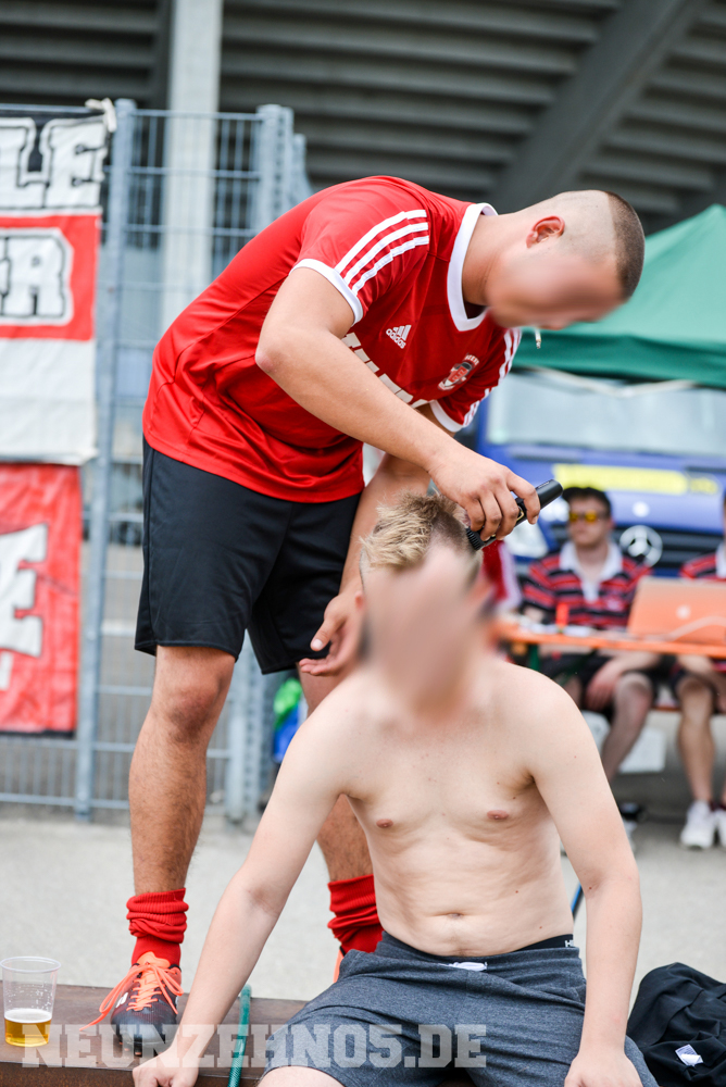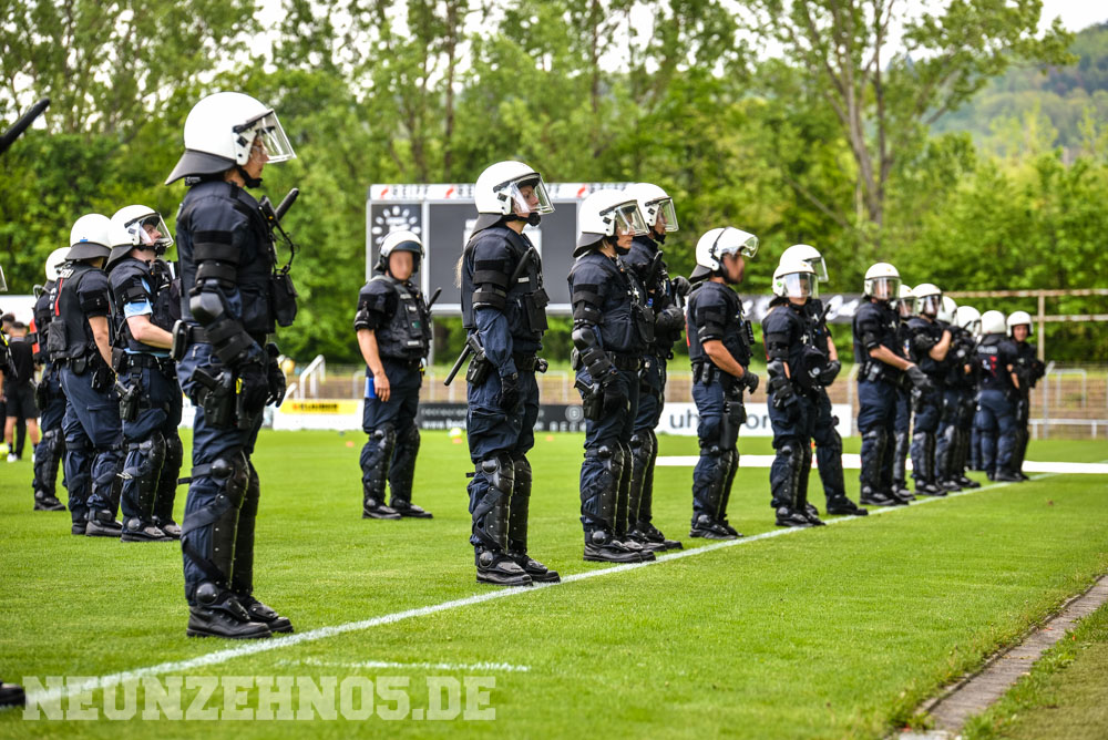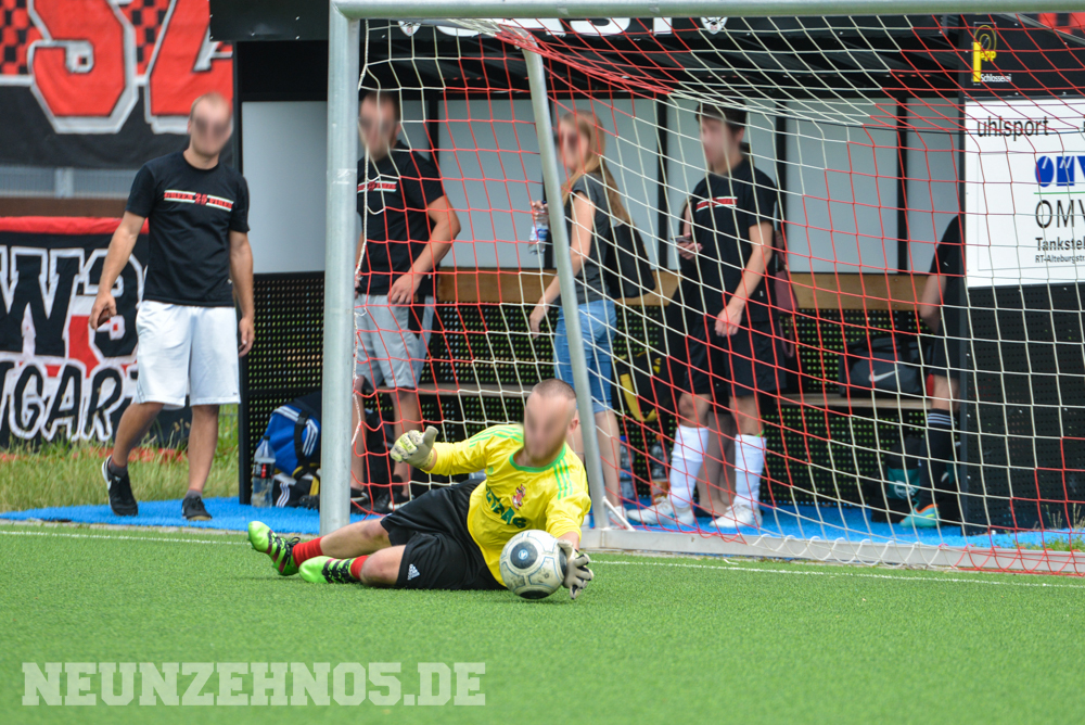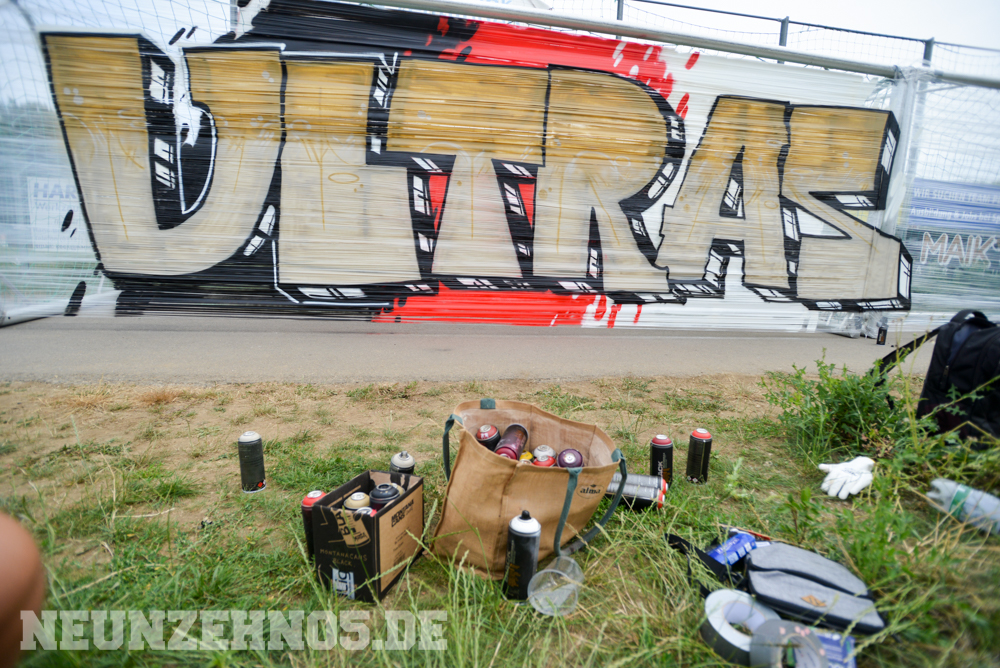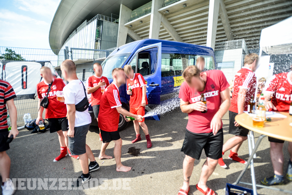 Im Stadion angekommen, konnten wir schnell feststellen, dass der Verein in Oberachern endlich auch im Gästeblock grillen durfte und dieses Jahr keiner den Lieferservice mit 30 Würsten spielen musste. Nachdem unsere Fahnen aufgehängt waren und die Mannschaft aufgewärmt war, gab es vor dem Weg in die Kabine noch eine Ansprache bezüglich des Pokalderbys. Der Mannschaft wurde eine „Gruppo Anti Ulm“ Fahne übergeben, die sie sich in die Kabine hängen soll, um sich der Wichtigkeit des Spiels bewusst zu werden, sich heiß zu machen und einen Teamgeist zu entwickeln, um sich mit stolzer Brust der Partie entgegen zu stellen. Zum Spiel selbst kann man erst einmal sagen, dass es eine, für die Verhältnisse der letzten Wochen, gute erste Halbzeit war. Zur Halbzeit immerhin ein 0:0. Stimmungstechnisch war das Ganze auch noch ausbaufähig, aber ganz okay. In der zweiten Halbzeit hatte die Mannschaft offenbar keine Lust mehr und gab sich der Niederlage hin. Da absolut gar keine Gegenwehr mehr kam, machte Oberachern ohne große Probleme vier Tore. Der provokante Torjubel in Richtung Gästeblock war definitiv unnötig. Was folgt war klar, heftige Beleidigungen und Gepöbel. Bullen, die sich einmischen und dann den Zeitpunkt verpassen, das Spielfeld wieder rechtzeitig zu verlassen. Bittere Niederlage vor dem Derby.