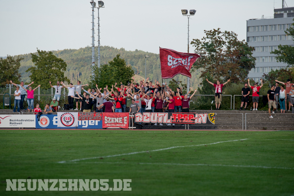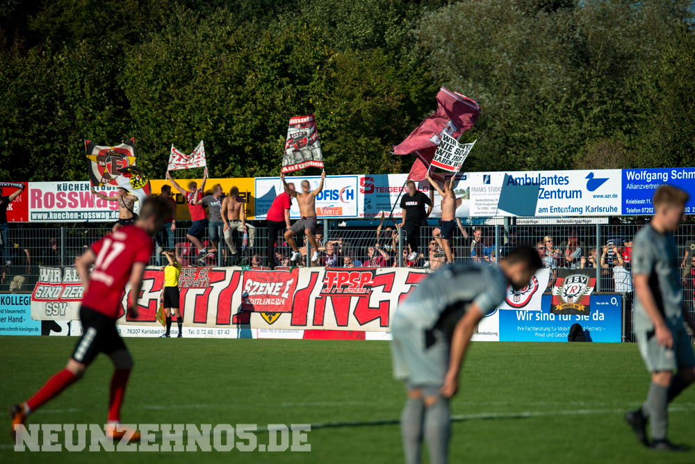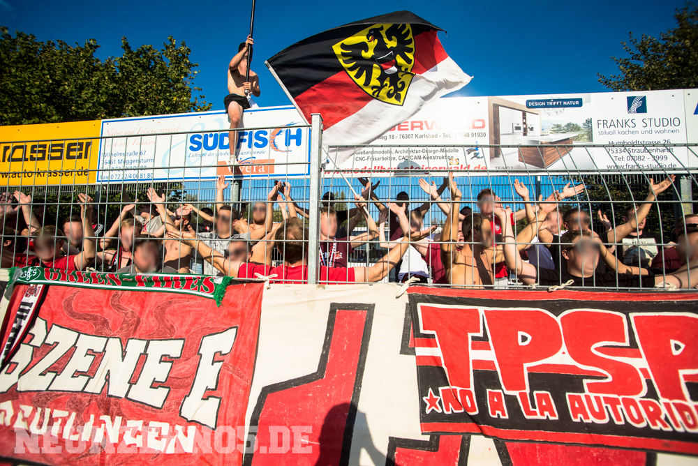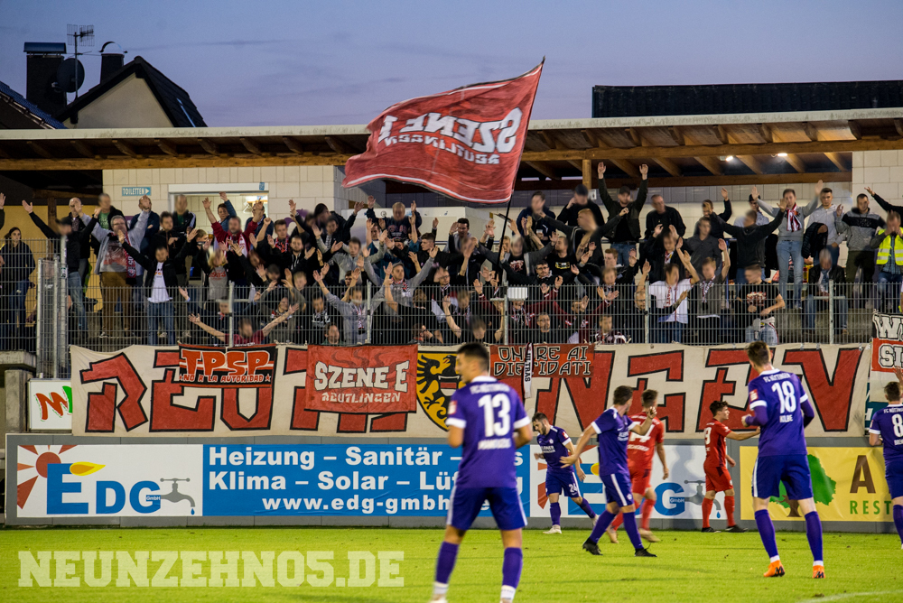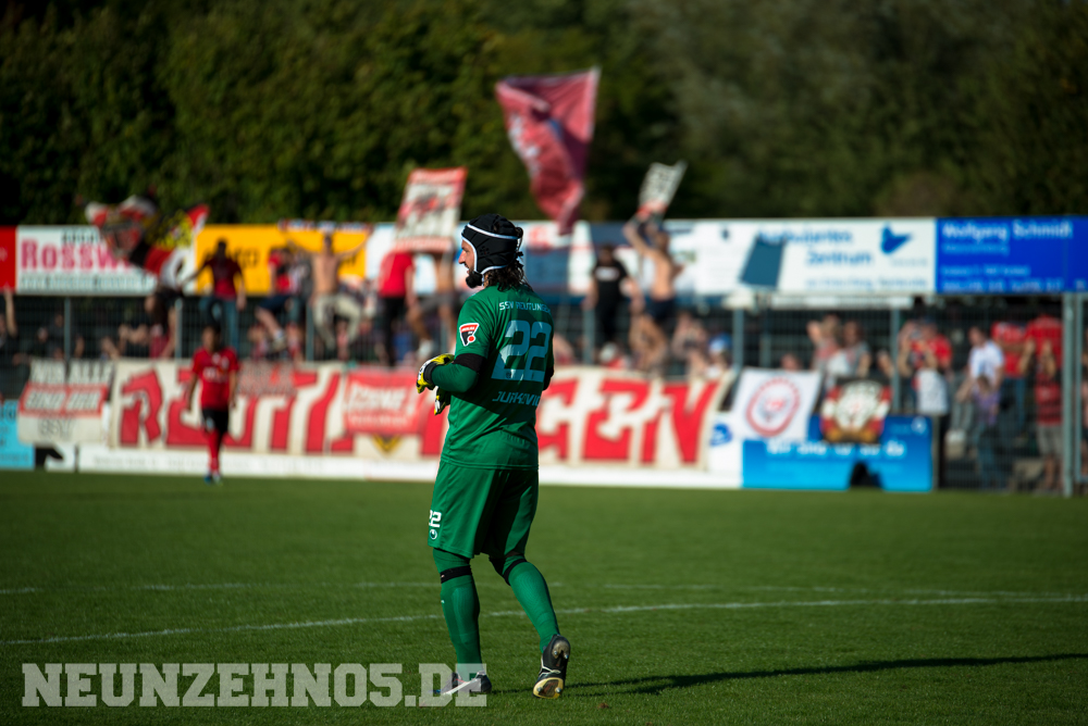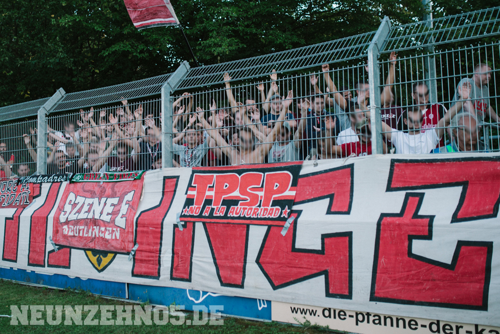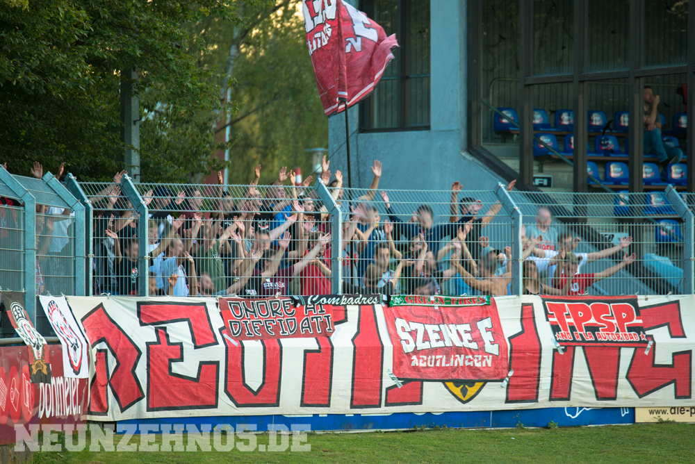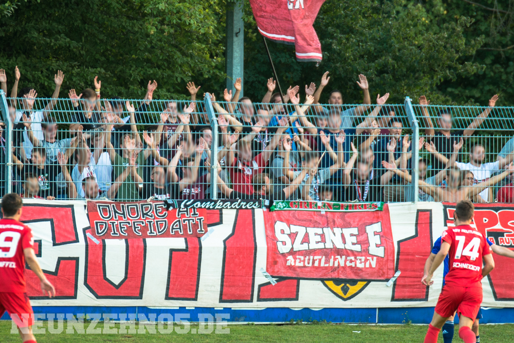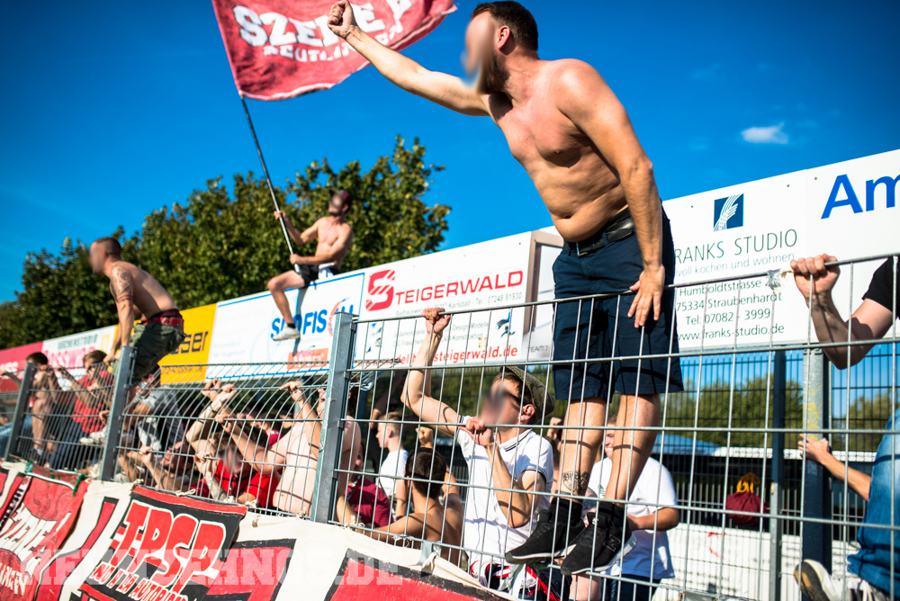Diesmal also Göppingen. Aufgrund der Scherereien, die wir hier regelmäßig mit den Bullen hatten, entschieden und es in unserer jetzigen Situation definitiv nicht zielführend ist den nächsten „Skandal“ herauszufordern, entschlossen wir uns diesmal für die entspannte Anreise-Variante per Bus statt Bahn. Und so fanden wir uns direkt nach dem Erreichen der B10 wieder in der Polizei-Eskorte wieder. Allerdings, trotz erneut anwesender Reiterstaffel hielten sich die Cops diesmal angenehm zurück. Nach peniblen aber dennoch korrekten Einlasskontrollen standen wir im Gästeblock, der ja bekanntlich mit seinen Betonstufen zu überzeugen weiß. Soweit – so gut, doch dann kam unser SSV 05 ins Spiel. Beziehungsweise eben nicht, die Mannschaft agierte in der ersten Halbzeit komplett passiv und spielte höchstens noch mit. Die Quittung gab’s dann in der 30. Minute: 2 Göppinger waren quasi durch, einer wurde im Strafraum zu Fall gebracht. Den Elfmeter und auch das 2:0 nur einige Zeigerumdrehungen später verwandelte ausgerechnet unser Lieblings-Arschloch Kevin Dicklhuber. Pausenstand also 2:0. Die zweite Halbzeit lässt sich leider schnell zusammenfassen: Unser Team jetzt mit mehr Spielanteilen, viel geackert aber vor dem Tor viel zu ungefährlich und man fühlte sich an den SSV von vor 2, 3 Jahren erinnert. Im Block fanden wir uns derweil in der mittlerweile ungewohnten Situation wieder, dass wir voran gehen mussten um die Mannschaft zu pushen und den nötigen Biss und Siegeswillen auf den Platz zu tragen. Die dementsprechende Lautstärke kriegten wir auch ab und zu hin, summa summarum war da aber noch gut Luft nach oben. Bleibt zu hoffen, dass die Mannschaft erneut die Kurve kriegt und im nächsten Spiel liefern kann. Ganz bitter noch der Ausfall von Marcel Avdic, der Mitte der zweiten Halbzeit verletzt raus musste. Das sah garnicht gut aus, somit fehlt womöglich ein weiterer Leistungsträger im Kader. Zum Glück haben Bissingen und auch die Degerlocher Zecken ihre Punkte genauso liegen lassen, sodass wenigstens der Abstand zu diesen zwei nicht größer geworden ist, sprich wir weiterhin einen Punkt Rückstand auf den Erstplatzierten haben.