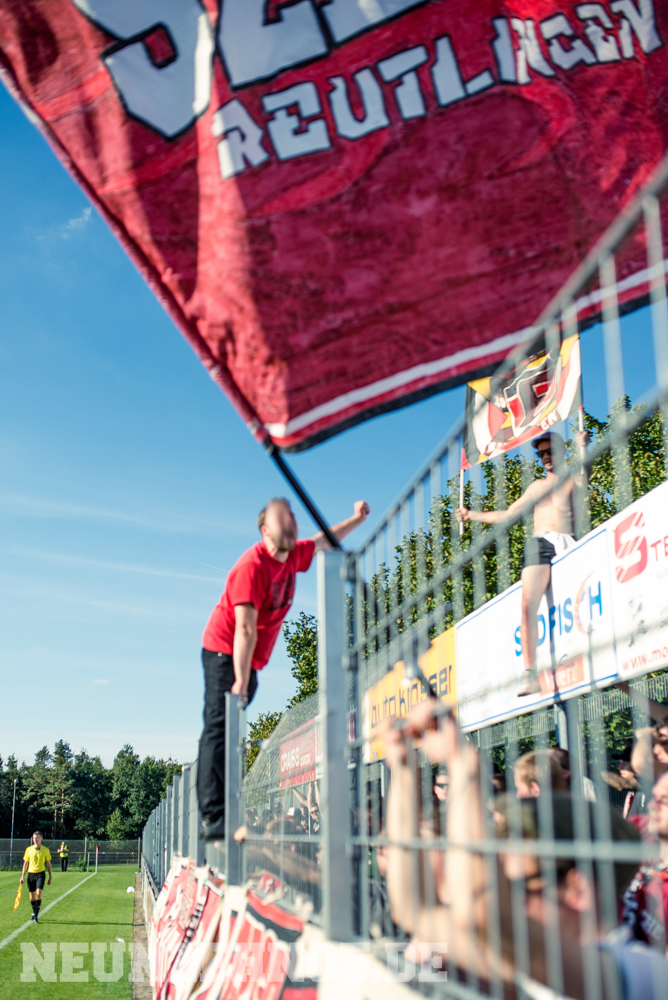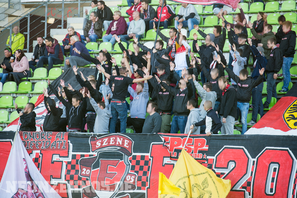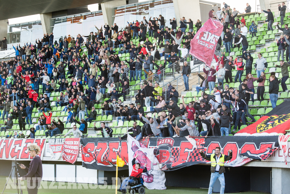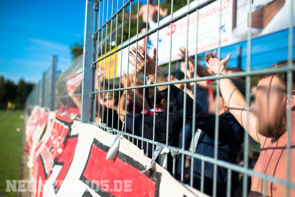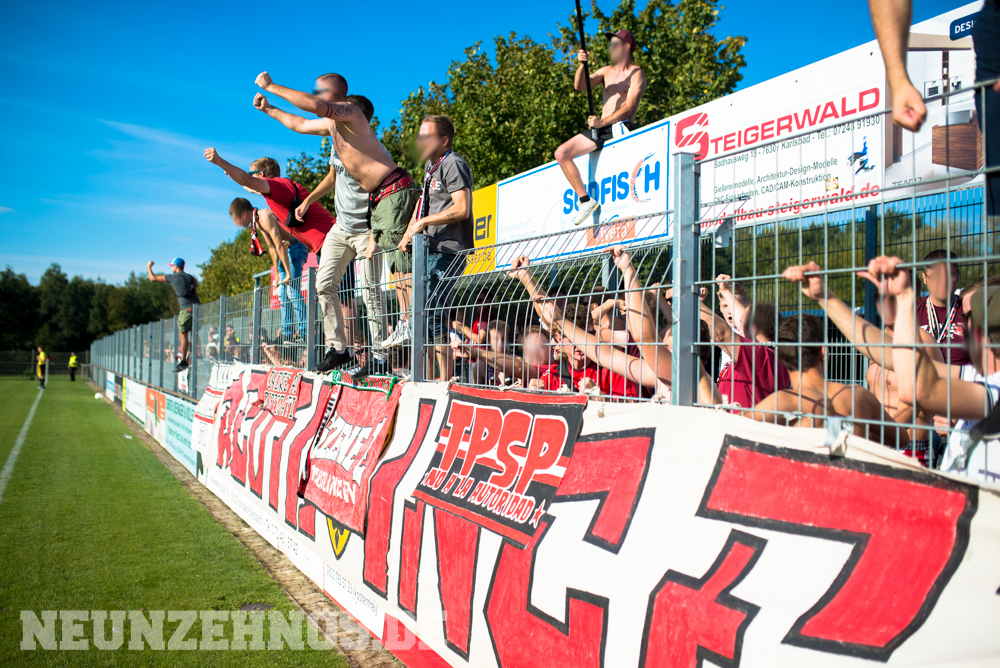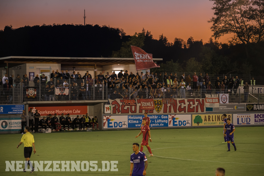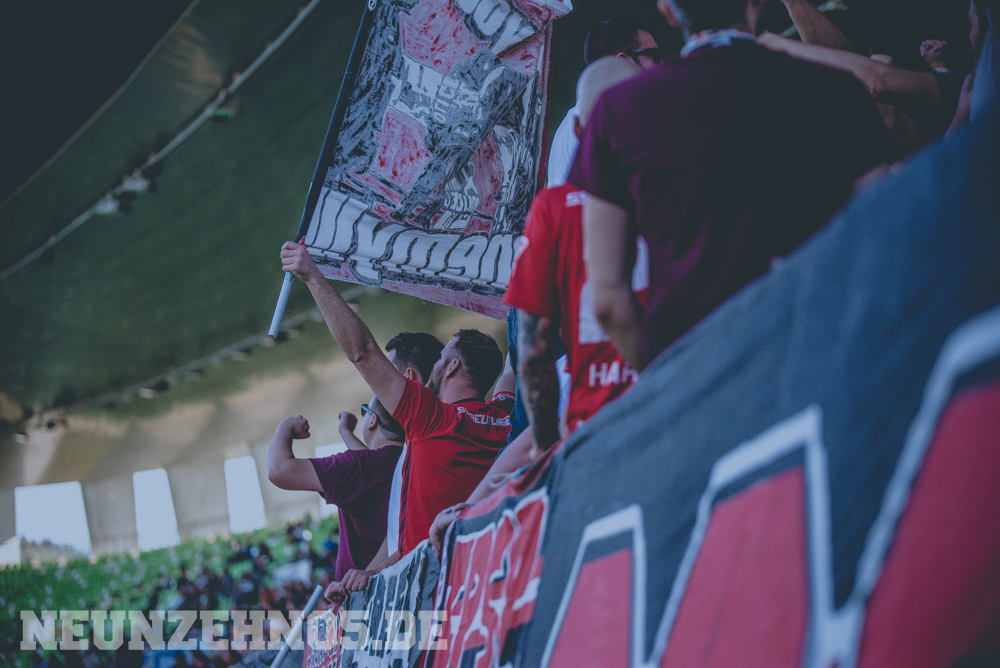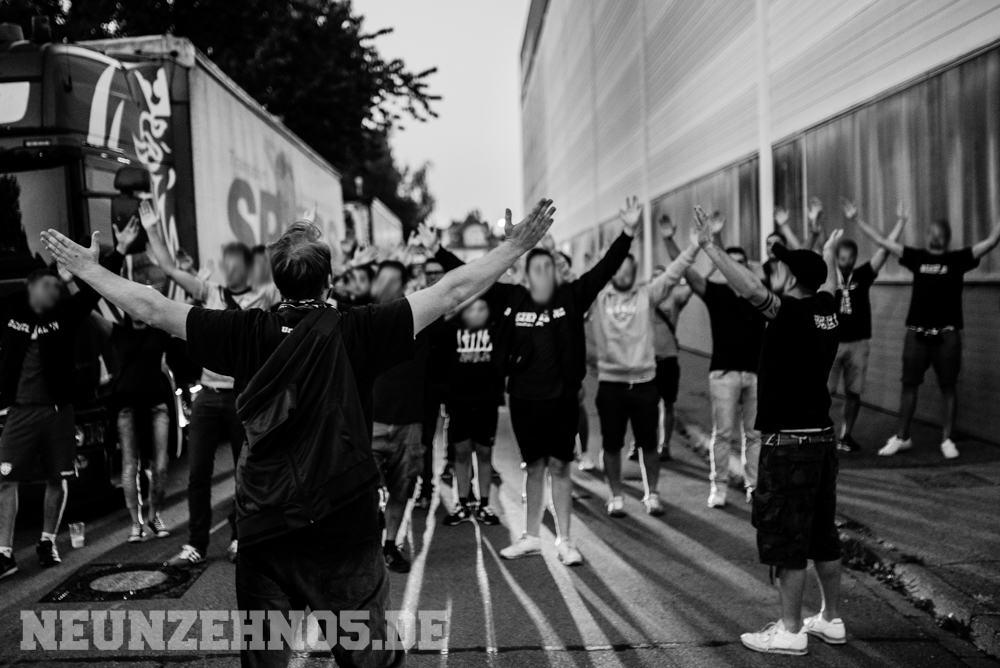 Diesmal also Göppingen. Aufgrund der Scherereien, die wir hier regelmäßig mit den Bullen hatten, entschieden und es in unserer jetzigen Situation definitiv nicht zielführend ist den nächsten „Skandal“ herauszufordern, entschlossen wir uns diesmal für die entspannte Anreise-Variante per Bus statt Bahn. Und so fanden wir uns direkt nach dem Erreichen der B10 wieder in der Polizei-Eskorte wieder. Allerdings, trotz erneut anwesender Reiterstaffel hielten sich die Cops diesmal angenehm zurück. Nach peniblen aber dennoch korrekten Einlasskontrollen standen wir im Gästeblock, der ja bekanntlich mit seinen Betonstufen zu überzeugen weiß. Soweit – so gut, doch dann kam unser SSV 05 ins Spiel. Beziehungsweise eben nicht, die Mannschaft agierte in der ersten Halbzeit komplett passiv und spielte höchstens noch mit. Die Quittung gab’s dann in der 30. Minute: 2 Göppinger waren quasi durch, einer wurde im Strafraum zu Fall gebracht. Den Elfmeter und auch das 2:0 nur einige Zeigerumdrehungen später verwandelte ausgerechnet unser Lieblings-Arschloch Kevin Dicklhuber. Pausenstand also 2:0. Die zweite Halbzeit lässt sich leider schnell zusammenfassen: Unser Team jetzt mit mehr Spielanteilen, viel geackert aber vor dem Tor viel zu ungefährlich und man fühlte sich an den SSV von vor 2, 3 Jahren erinnert. Im Block fanden wir uns derweil in der mittlerweile ungewohnten Situation wieder, dass wir voran gehen mussten um die Mannschaft zu pushen und den nötigen Biss und Siegeswillen auf den Platz zu tragen. Die dementsprechende Lautstärke kriegten wir auch ab und zu hin, summa summarum war da aber noch gut Luft nach oben. Bleibt zu hoffen, dass die Mannschaft erneut die Kurve kriegt und im nächsten Spiel liefern kann. Ganz bitter noch der Ausfall von Marcel Avdic, der Mitte der zweiten Halbzeit verletzt raus musste. Das sah garnicht gut aus, somit fehlt womöglich ein weiterer Leistungsträger im Kader. Zum Glück haben Bissingen und auch die Degerlocher Zecken ihre Punkte genauso liegen lassen, sodass wenigstens der Abstand zu diesen zwei nicht größer geworden ist, sprich wir weiterhin einen Punkt Rückstand auf den Erstplatzierten haben.