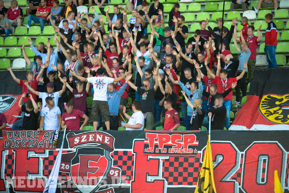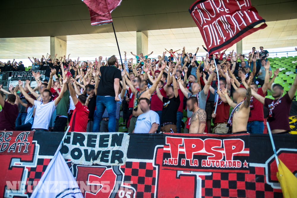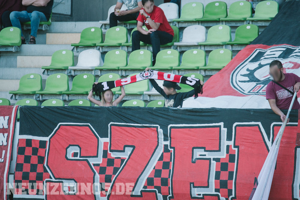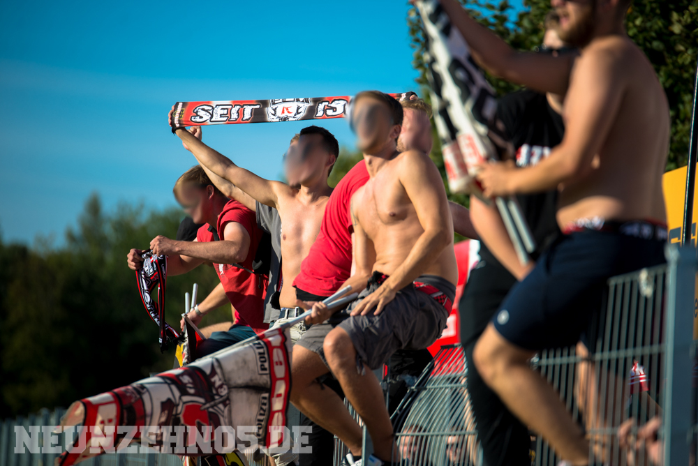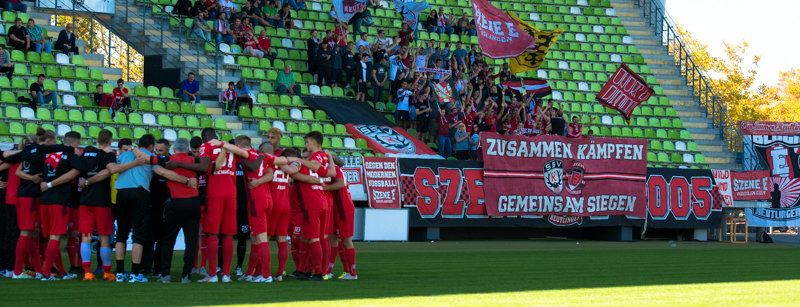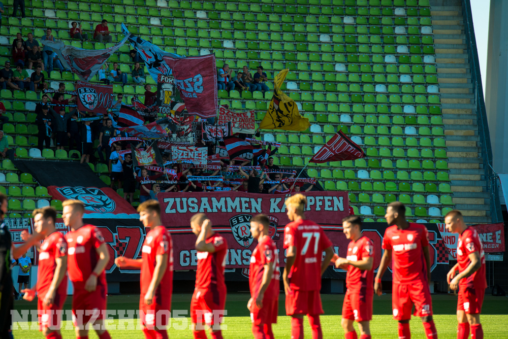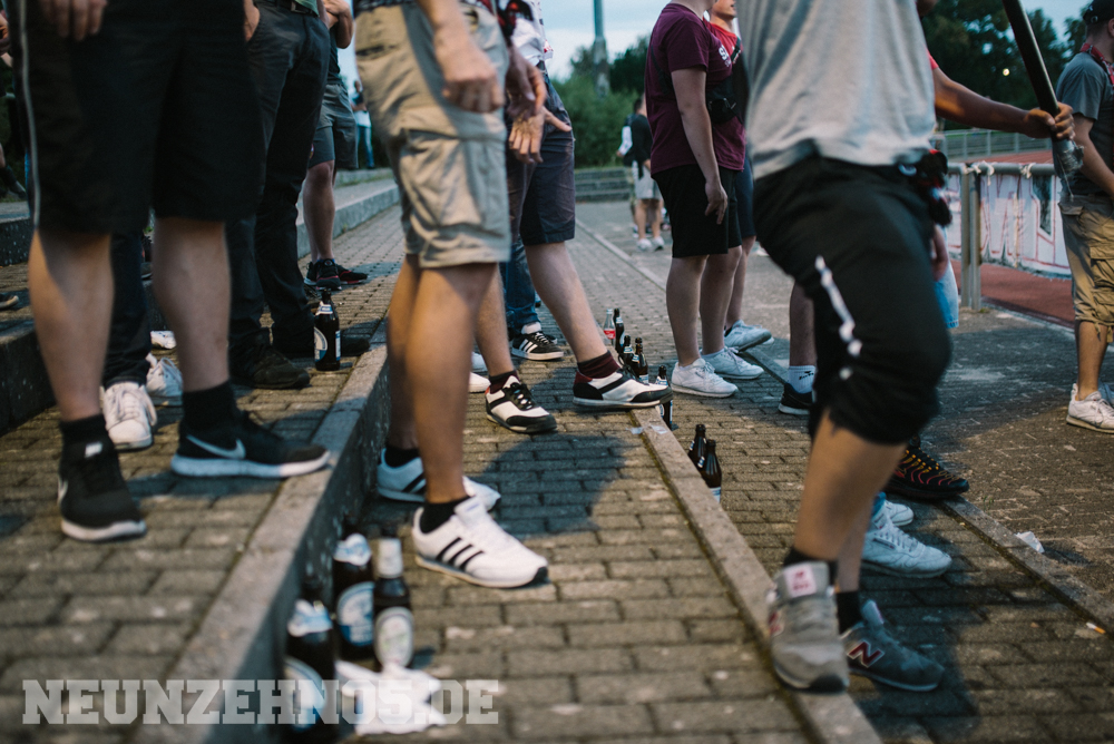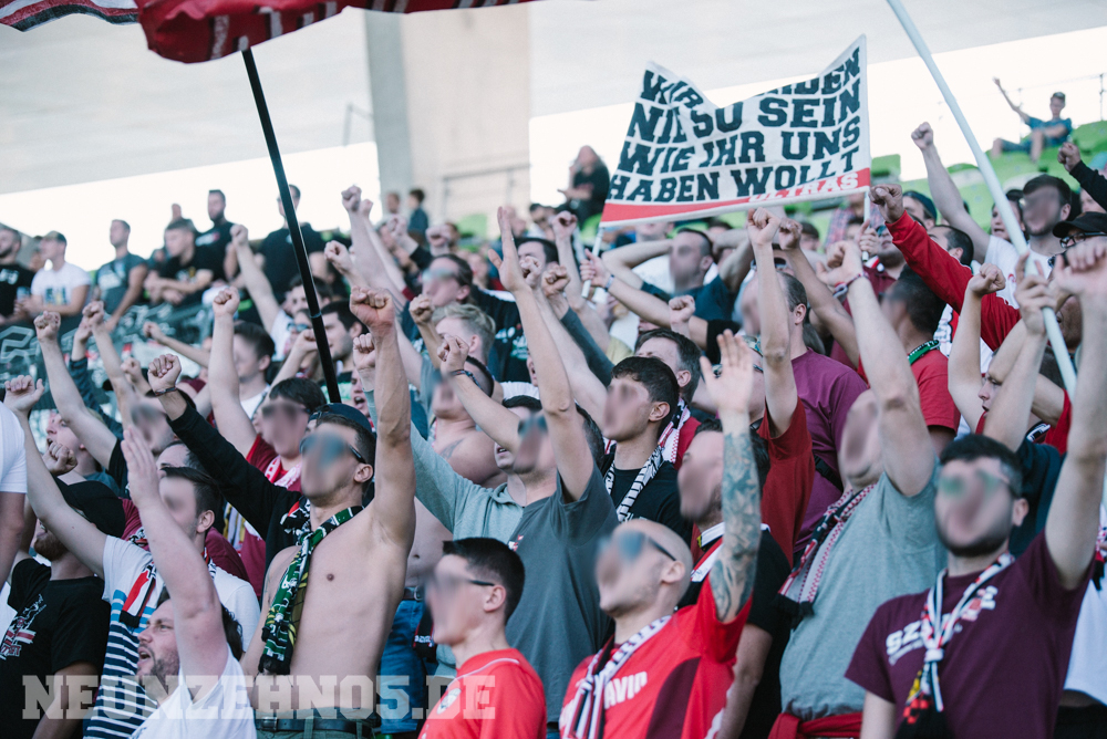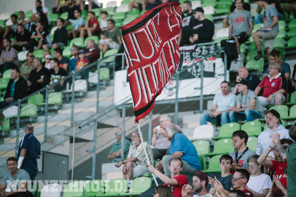 Diesmal also Göppingen. Aufgrund der Scherereien, die wir hier regelmäßig mit den Bullen hatten, entschieden und es in unserer jetzigen Situation definitiv nicht zielführend ist den nächsten „Skandal“ herauszufordern, entschlossen wir uns diesmal für die entspannte Anreise-Variante per Bus statt Bahn. Und so fanden wir uns direkt nach dem Erreichen der B10 wieder in der Polizei-Eskorte wieder. Allerdings, trotz erneut anwesender Reiterstaffel hielten sich die Cops diesmal angenehm zurück. Nach peniblen aber dennoch korrekten Einlasskontrollen standen wir im Gästeblock, der ja bekanntlich mit seinen Betonstufen zu überzeugen weiß. Soweit – so gut, doch dann kam unser SSV 05 ins Spiel. Beziehungsweise eben nicht, die Mannschaft agierte in der ersten Halbzeit komplett passiv und spielte höchstens noch mit. Die Quittung gab’s dann in der 30. Minute: 2 Göppinger waren quasi durch, einer wurde im Strafraum zu Fall gebracht. Den Elfmeter und auch das 2:0 nur einige Zeigerumdrehungen später verwandelte ausgerechnet unser Lieblings-Arschloch Kevin Dicklhuber. Pausenstand also 2:0. Die zweite Halbzeit lässt sich leider schnell zusammenfassen: Unser Team jetzt mit mehr Spielanteilen, viel geackert aber vor dem Tor viel zu ungefährlich und man fühlte sich an den SSV von vor 2, 3 Jahren erinnert. Im Block fanden wir uns derweil in der mittlerweile ungewohnten Situation wieder, dass wir voran gehen mussten um die Mannschaft zu pushen und den nötigen Biss und Siegeswillen auf den Platz zu tragen. Die dementsprechende Lautstärke kriegten wir auch ab und zu hin, summa summarum war da aber noch gut Luft nach oben. Bleibt zu hoffen, dass die Mannschaft erneut die Kurve kriegt und im nächsten Spiel liefern kann. Ganz bitter noch der Ausfall von Marcel Avdic, der Mitte der zweiten Halbzeit verletzt raus musste. Das sah garnicht gut aus, somit fehlt womöglich ein weiterer Leistungsträger im Kader. Zum Glück haben Bissingen und auch die Degerlocher Zecken ihre Punkte genauso liegen lassen, sodass wenigstens der Abstand zu diesen zwei nicht größer geworden ist, sprich wir weiterhin einen Punkt Rückstand auf den Erstplatzierten haben.