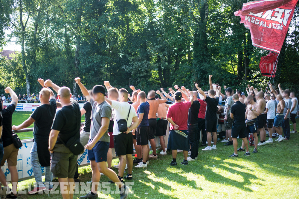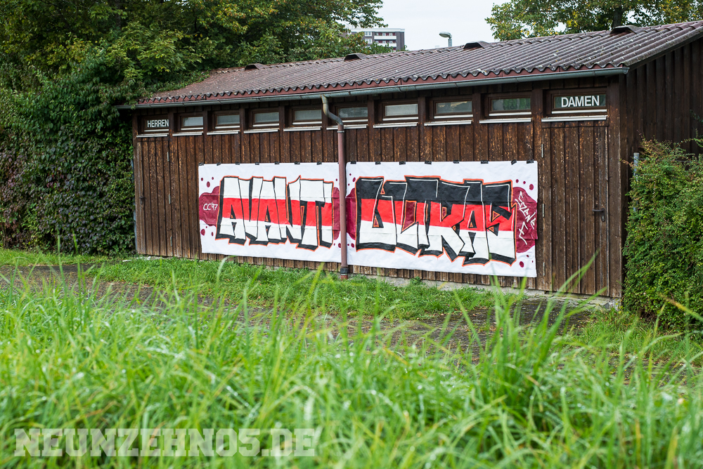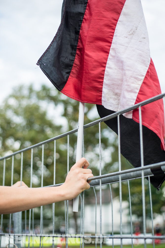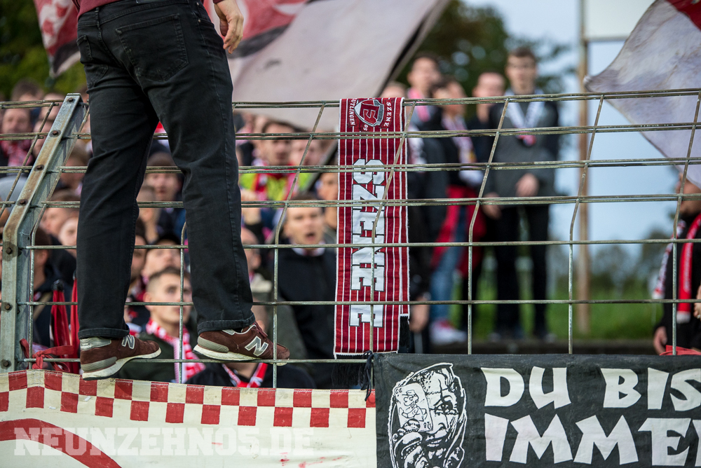 Die Umstände dieses Tages hätten gerne besser sein können und unsere Mannschaft lief unter schwierigen Umständen auch nicht grad in Hochform auf. Die negativen Vorzeichen sollten dann Realität werden und alle Anwesenden bekamen einen sehr mangelhaften Spieltag präsentiert. Da Linx nicht gerade die fußballerische Feinkost der Oberliga darstellt, lagen wir zur Halbzeit „lediglich“ mit einem Tor hinten. Doch ausgerechnet dann als unsere Mannschaft gegen Mitte der zweiten Halbzeit, tatsächlich ein wenig anzog und zumindest den ein oder anderen gut gemeinten Spielzug verzeichnete, bekamen wir direkt den zweiten Gegentreffer eingeschenkt. Im Block nahmen wir mit den vorhandenen Leuten diesen Umstand an und zelebrierten ab da als einziges Lied des Tages, das seit neuestem wieder ins Leben gerufene „Bei dir“. In der vorletzten Spielminute bekamen wir noch das 3:0 eingeschenkt, was aber mehr eine Randnotiz darstellte.