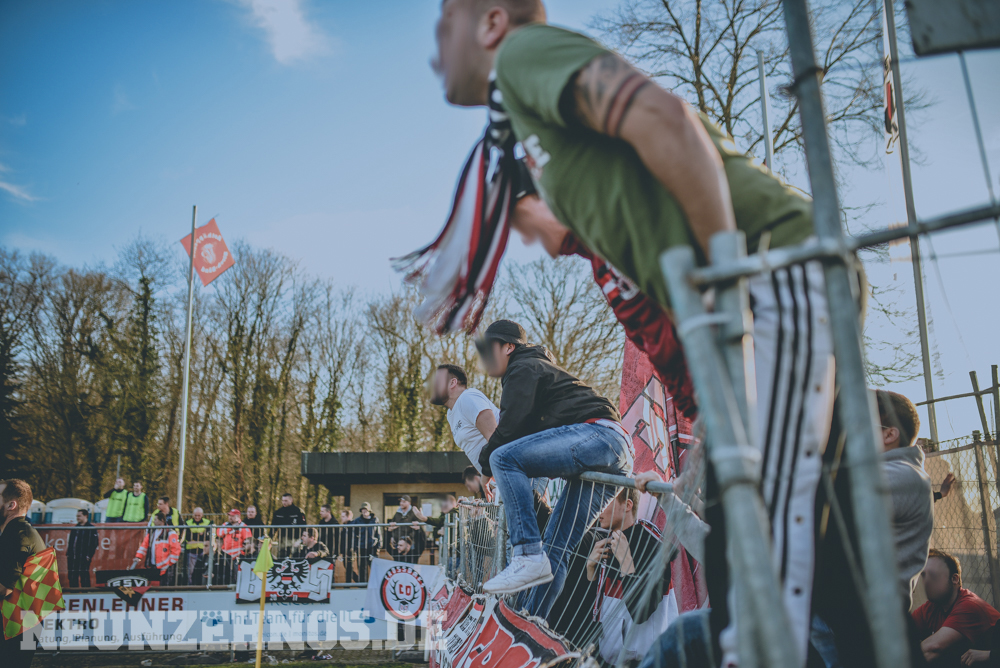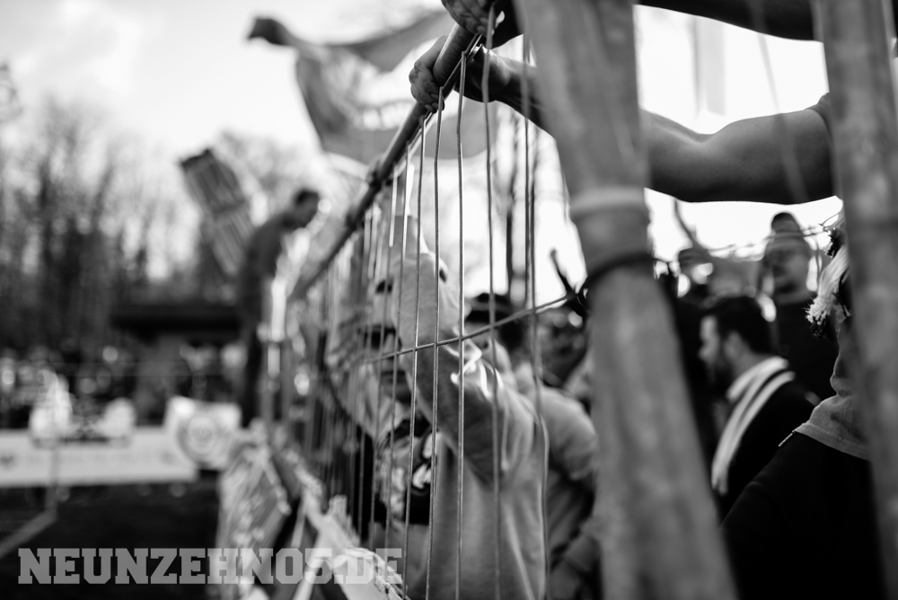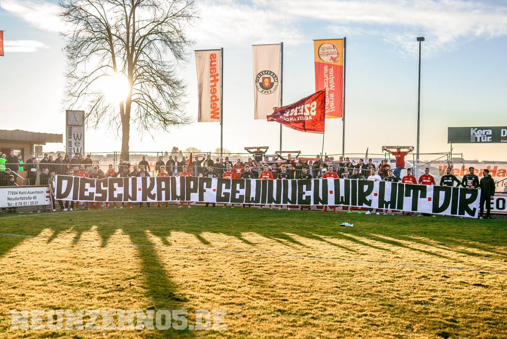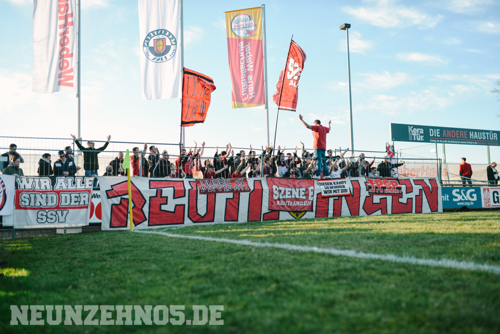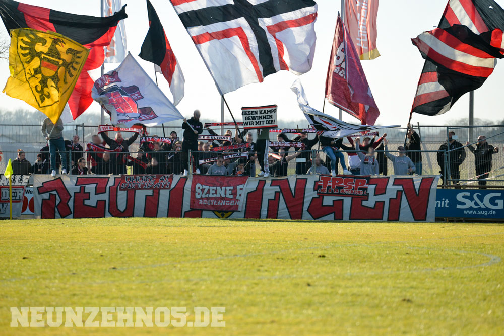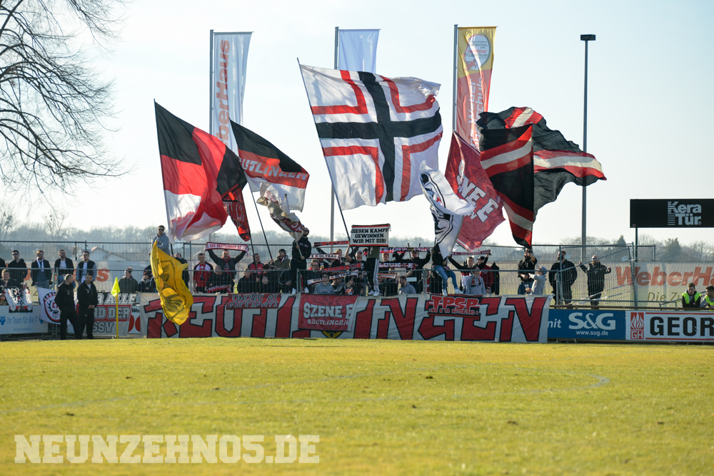 Erstes Spiel der Rückrunde, dazu die ersten warmen Tage des Jahres, Tabellen-Vierter gegen Tabellen-Vierzehnten, 35 Punkte gegen 10 Punkte in der Tabelle. Die Vorzeichen standen also gar nicht so schlecht für unser Spiel gegen Linx. Beginnen mussten wir den Tag dennoch etwas gedämpft, da unser Bus zunächst die Klinik in Tübingen anfuhr, um einem schwer erkrankten Mitglied unserer Gruppe einen kurzen Besuch abzustatten. Dabei zeigten wir zu seinem Fenster hin ein großes Spruchband, um ihm Mut zu machen für die nächsten schweren Wochen. Im Anschluss ging es dann in das Kuh-Kaff Linx. Vielleicht war die Winterpause ja doch etwas zu lang, denn am Ende sollten wir als Verlierer nach Hause fahren. Unsere Elf startete sehr ansehnlich in die Partie und hatte Linx über die gesamte erste Halbzeit komplett im Griff. Aus den vielen Chancen hätten auch mal mindestens zwei Tore fallen können, trotzdem stand es zur Pause 0:0. Aber es schien, als sei das nur noch eine Frage der Zeit. Nach dem 1:0 Führungstreffer schalteten unsere Jungs aber komplett zurück und überließen Linx das Spiel, was diese auch in Zählbares ummünzten. Beim finalen 3:1-Treffer kamen wieder vollkommen unnötige Jubel-Gesten in unsere Richtung, sodass der gesamte Gästeblock jetzt so richtig vor Wut schäumte, wodurch ein Bauzaun vor unserem Block kaputt. Nach dem Abpfiff wurde zusammen mit der Mannschaft nochmal das erwähnte Spruchband für unseren Brother gezeigt.