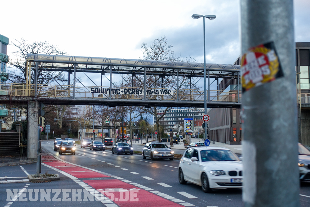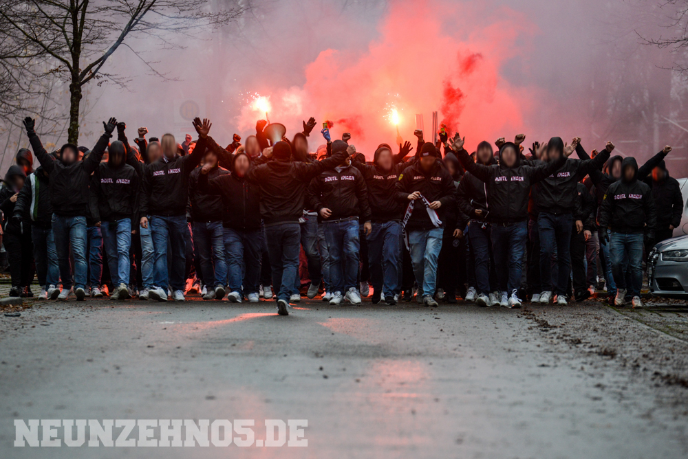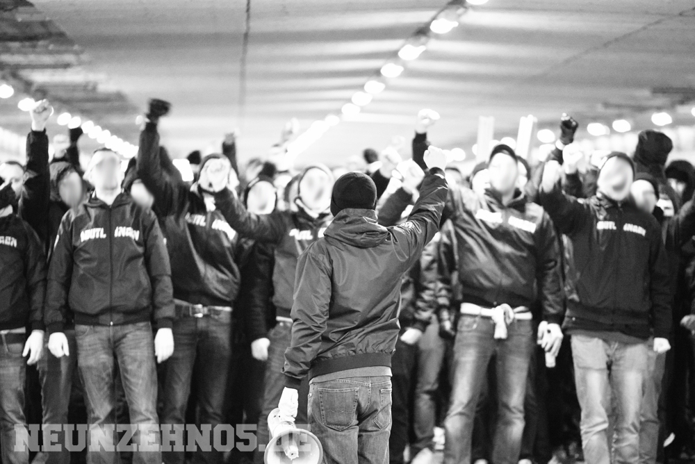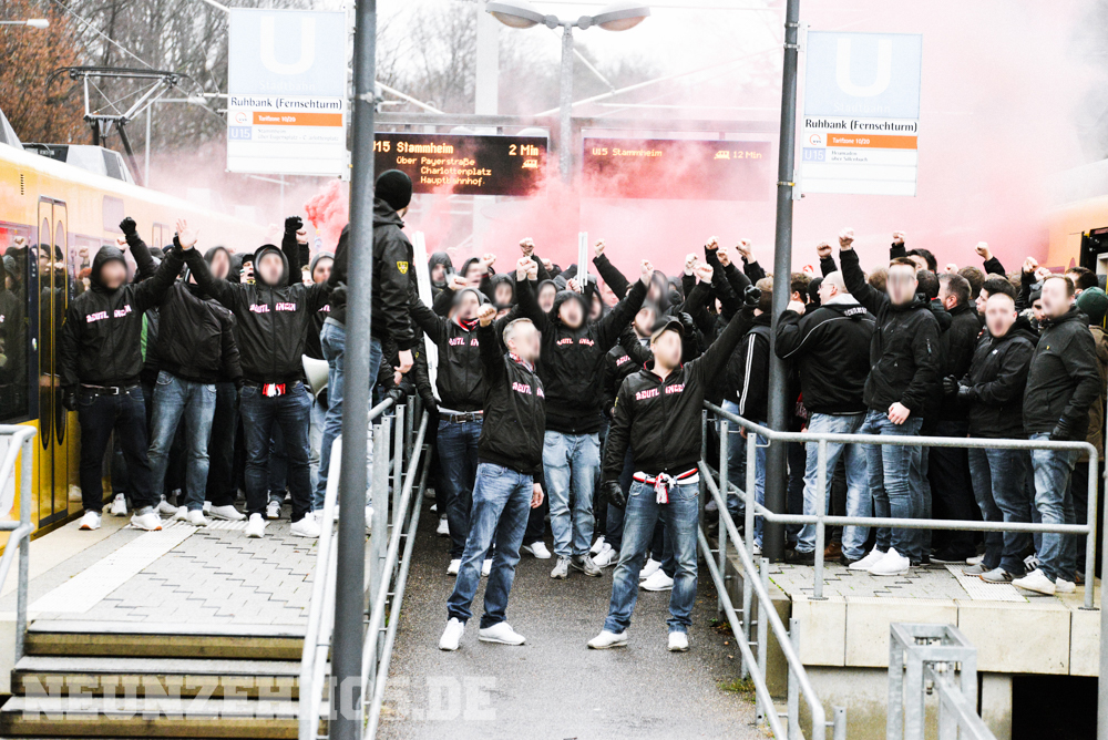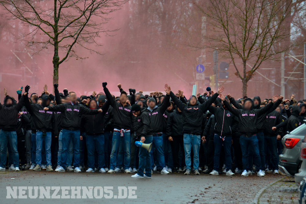 Frühzeitig ging es am Derbytag zum Reutlinger Hauptbahnhof, wo sich ein ganz ansehnlicher Zugfahrerhaufen zusammenfand. Mit dem Zug und U-Bahn ging es dann hoch auf die Waldau, wo oben angekommen mit rotem Rauch und ein paar Fackeln untermalt, sowie ersten Gesängen die Meter von der Ruhbank bis zum Stadion marschiert wurde. Die Bullen hielten sich unterdessen extrem im Hintergrund, was man Anno 2018 auch nicht unbedingt so erwarten würde und so war man dann auch tatsächlich überrascht, als hinter der Haupttribüne nur durch einen Zaun getrennt rund 40 vermummte Kickers-Leute waren. Am Zaun wurden dann diverse kleine Nettigkeiten rüber geworfen, zu einem direkten Kontakt kam es dann allerdings nicht. Als die Bullen dann mit Pfeffer einschritten, ging es ein paar Meter weiter Richtung Gästeeingang, wo überraschenderweise ein nicht abgeschlossenes Tor zum Stadiongelände war. Also kurz aufgemacht, aber keinen Durchgang zu den Kickers gesehen und dann doch von Bullenpferden zum Gästeeingang getrieben worden. Während der Hauptmob dort auf den Einlass wartete, erwischte die sportliche Reutlinger Fraktion dann tatsächlich die Kickers und so gab es ohne Bullen einen Schlagabtausch. Der Gästeblock war richtig gut gefüllt, dürften an die 800 Reutlinger inklusive hoher zweistelliger Zahl Gäste aus SG gewesen sein, großen Dank dafür an dieser Stelle! In der ersten Halbzeit war das Gefühl sehr geil mit so einem großen Haufen bei einem sportlich wichtigen Spiel am Start zu sein und endlich mal wieder einen Gegner gegenüber zu haben. Was ein bisschen schade war: Die bekannte Parasiten-Fahne wurde an PVC-Rohre gebunden und mit einer Seilkonstruktion am Fangnetz hochgezogen, kam aber nicht wie gewünscht zur Geltung, weil das unglaubliche Pisswetter samt Wind die Fahne die meiste Zeit in der Horizontalen hielt. Supportmäßig war der Gästeblock ganz gut aufgelegt, wobei uns auch hier der Wind wohl etwas an Lautstärke auf dem Feld genommen hat. Die Kickers blieben unterdessen ihrem niedrigen Niveau treu und zeigten über das Spiel zwei Spruchbänder gegen uns, bei denen wir noch lange nach dem Spiel am Überlegen waren, was genau sie uns damit sagen wollten. Auf dem Platz ging dann in der 30. Minute der bekackte SVK in Führung. Diese Führung konnten sie dann noch das restliche Spiel verwalten, auch weil unsere Jungs heute leider einige sehr sehr gute Chancen liegen ließen. Insbesondere in der zweiten Halbzeit hätte wirklich mal mindestens ein Tor für uns fallen müssen. Einen Punkt für uns zu vergeben gibt es noch in der Kategorie Material präsentieren: Hier zeigten die Kickers einen frei verkäuflichen 1905-Schal, wir eine Fanclubfahne aus Tübingen. Die Scharmützel vor Spielbeginn hatten die Bullen in der Zwischenzeit aufgeweckt, und so ging es in deren Begleitung wieder zurück zum Bahnhof und dann nach Reutlingen.