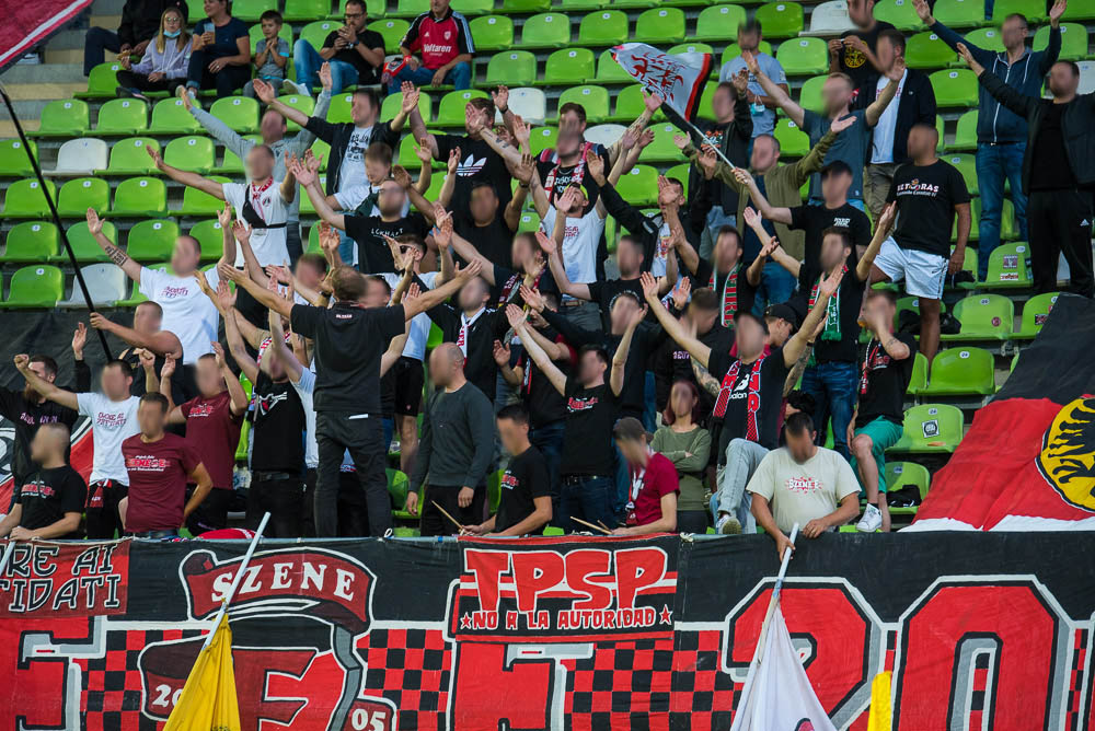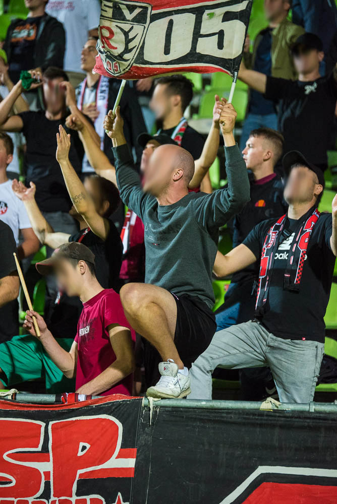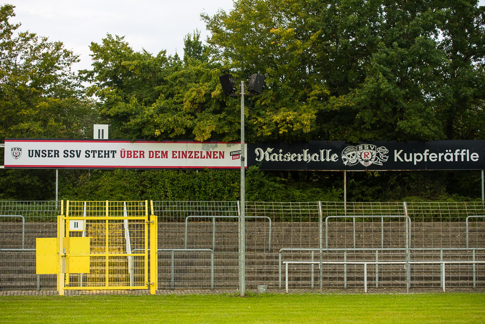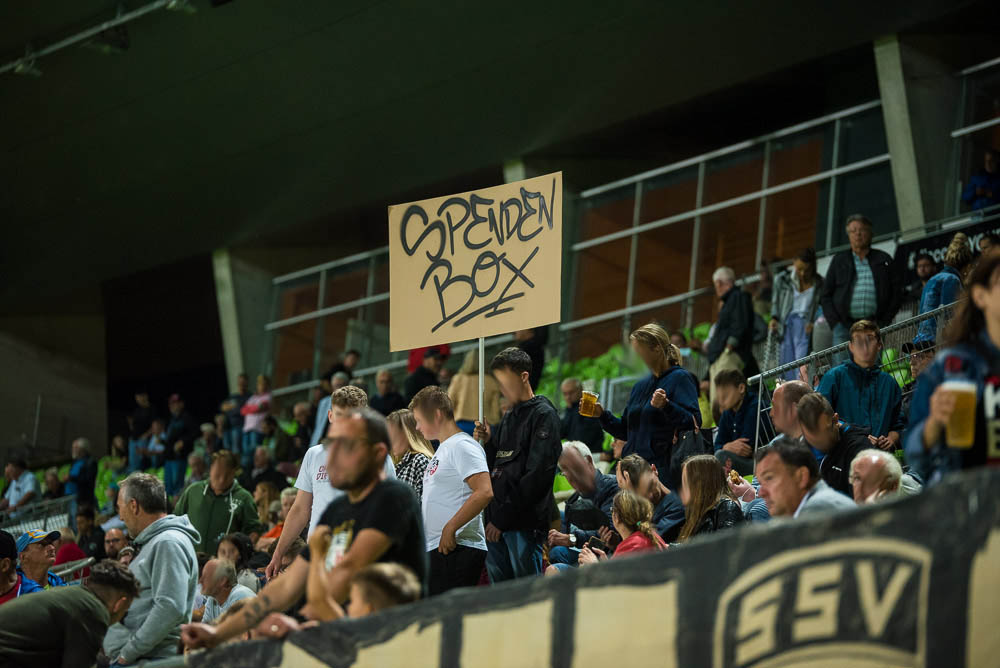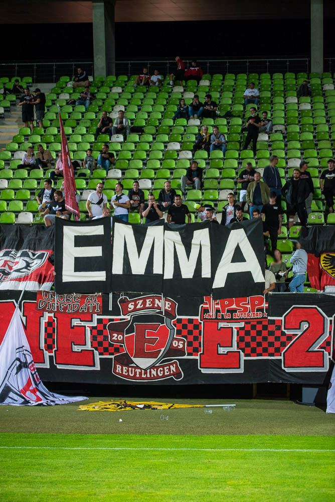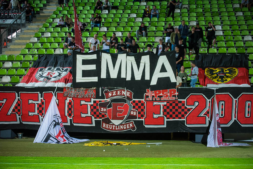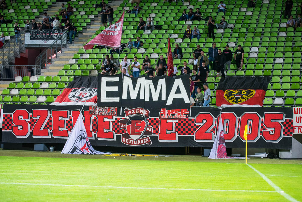 Zu Beginn des Spiels gab es eine Schweigeminute für Armin Rall, ein langjähriges Vereinsmitglied und Förderer des SSV. Rein ins Spiel, das heute für unser leider nichts Positives bereithielt. Die Geschichte ist schnell erzählt. Schon kurz nach Spielbeginn lagen wir mit 0:1 im Hintertreffen, das zweite Tor folgte durch einen verwandelten Foulelfmeter nach gut 20 Minuten. Danach war die Messe eigentlich gelesen. Weitere Tore fielen nicht mehr und so endete das Spiel mit einer 0:2-Niederlage. Der frustrierende Spielverlauf ging leider auch an unserem Block nicht spurlos vorbei. Wirklich schlecht waren wir nicht, aber irgendwie fehlte die Durchschlagskraft und so richtig sprang der Funke nie über. In Block E begann die zweite Halbzeit optisch mit dem Zeigen der bekannten EMMA-Doppelhalter, da es das erste Spiel nach dem 24. Todestag unseres früheren Spielers Emmanuel „Emma“ Nwanegbo war. Die zweite Halbzeit war im Block E ähnlich wie die erste: Es gab dauerhaften Support und auch die Mitmachquote war in Ordnung, aber irgendwie war das Feuer der Heimauftritte im WFV-Pokal im August einfach nicht vorhanden.