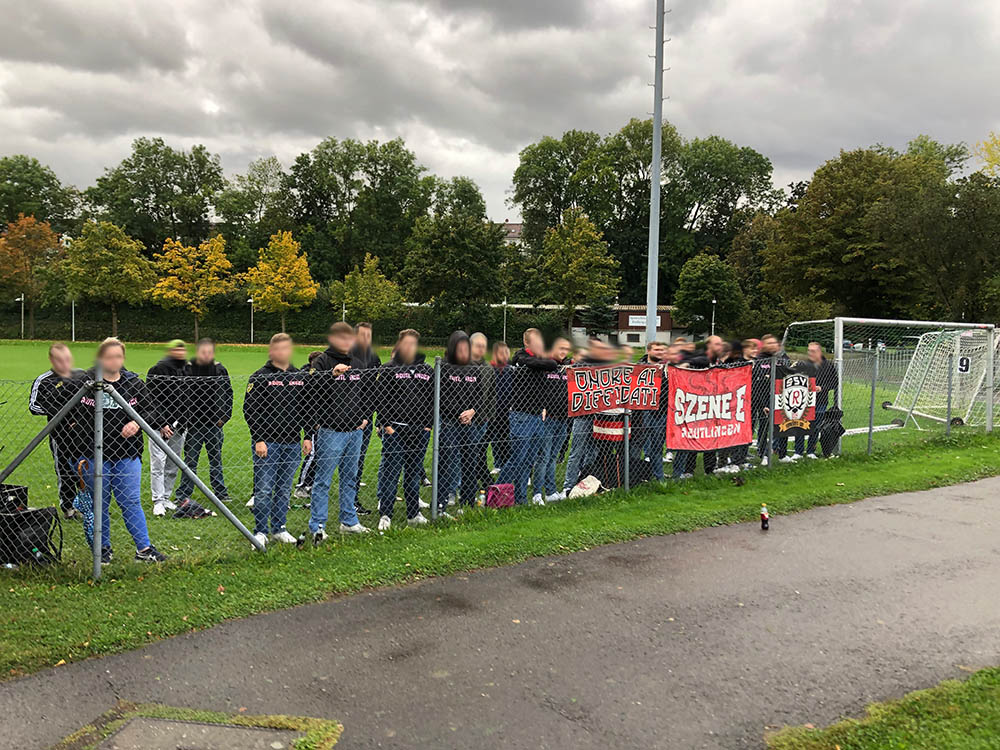 Konnten wir die Freiberger vor fast zwei Jahren noch mit 7:0 nach Hause schicken, haben sich die Verhältnisse mittlerweile um 180 Grad gewendet und Freiberg geht als klarer Favorit ins Rennen. Dass sie ihrer Favoritenrolle durchaus gerecht werden können, mussten wir bereits Anfang August schmerzlich im Achtelfinale des WFV-Pokals erfahren. Da die alternden Altstars bei Freiberg bezahlt werden müssen, ließen die Freiberger die Aussicht auf mehr Zuschauer nicht ungenutzt und verlangten utopische 12€ Eintritt. Trotz Kommunikation der Vereine im Vorfeld beharrten in Freiberger auf ihren angesetzten Preis, sodass sich der Reutlinger Gästeanhang dafür entschied, das Spiel außerhalb des Stadions zu verfolgen. Da es sich in Freiberg mehr um einen Sportplatz mit Tribüne als um ein Stadion handelt, stellte dies kein Problem dar. Der Support gestaltete sich allerdings sehr zäh. Auf dem Rasen agierten unsere Junge ebenfalls ziemlich pessimistisch und lagen nach 32 Minuten mit drei Toren zurück. Wir stellten unseren Support nach dem 3:0 ein und verabschiedeten uns direkt mit Abpfiff wieder Richtung Heimat.