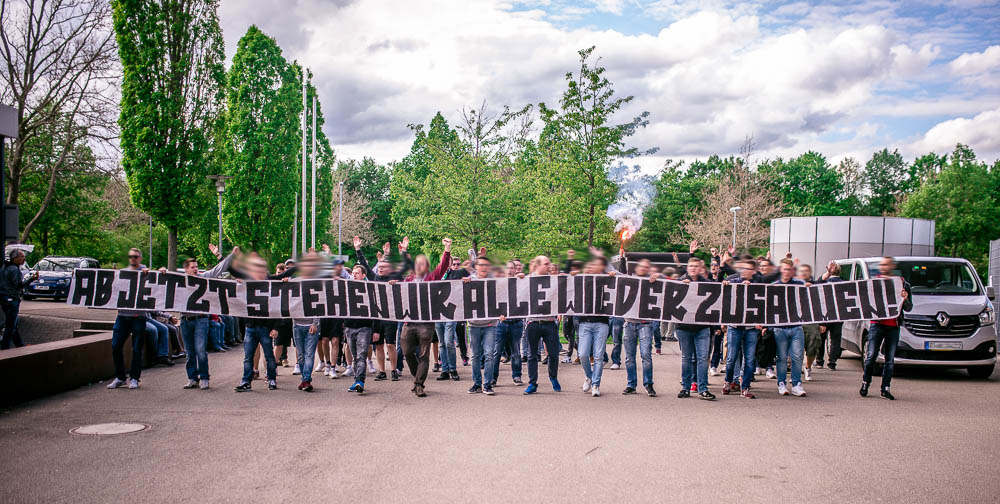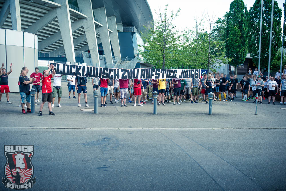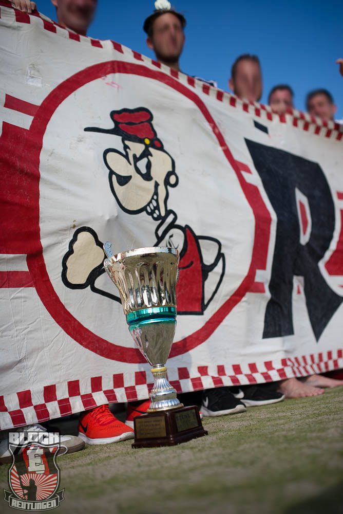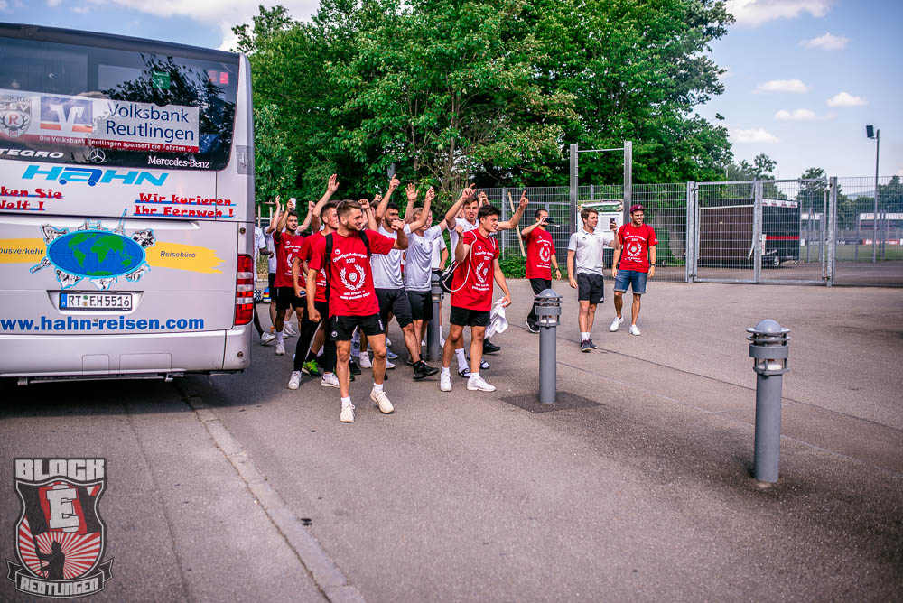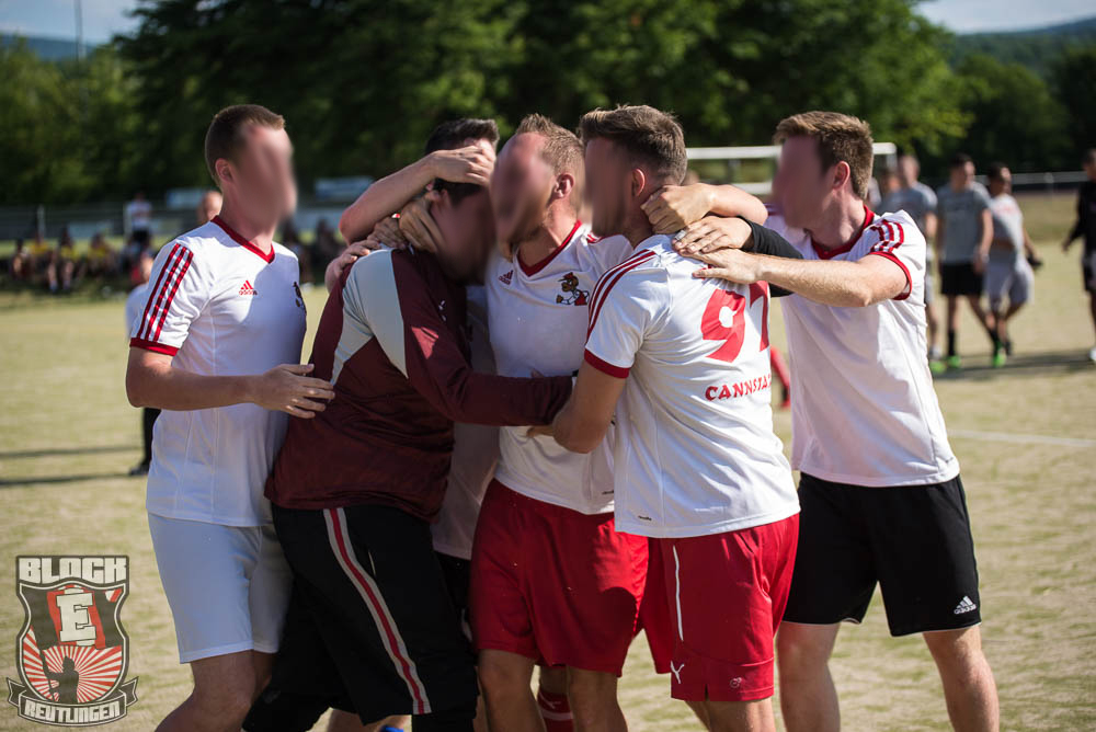 Eine Besonderheit gab es beim diesjährigen Turnier: Da unsere A-Jugend an diesem Tag das Rückspiel in der Relegation in Backnang bestritt und nach dem Sieg im Hinspiel die Zeichen auf Aufstieg standen, bereiteten wir uns bereits im Vorfeld darauf vor, den Jungs bei der Ankunft des Mannschaftsbusses an der Kreuzeiche einen gebührenden Empfang zu bereiten. So wurde das Turnier vor den Halbfinalspielen unterbrochen und die gesamte Meute zog los, um der A-Jugend zum vollbrachten Aufstieg in die zweithöchste Spielklasse dieser Altersstufe zu beglückwünschen.