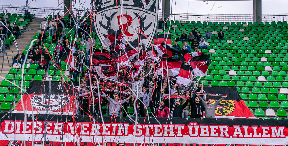 Unsere Gruppe startete mit einer kleinen Choreographie in die Saison. Die Choreographie wurde bereits mehrere Minuten vor Anpfiff der Mannschaft präsentiert, stand unter dem Motto “Der Verein steht über allem!“ und gab insgesamt ein gelungenes Bild ab. Auch anschließend lieferte Block E einen soliden Auftritt ab, der von der lautstärkemäßig jedoch zu unbeständig war. Dennoch war dieser Abend etwas Besonderes, da wir nach fast drei Jahren unseren langjährigen Anstimmer und Capo wieder im Stadion in unseren Reihen begrüßen konnten. Willkommen zurück!