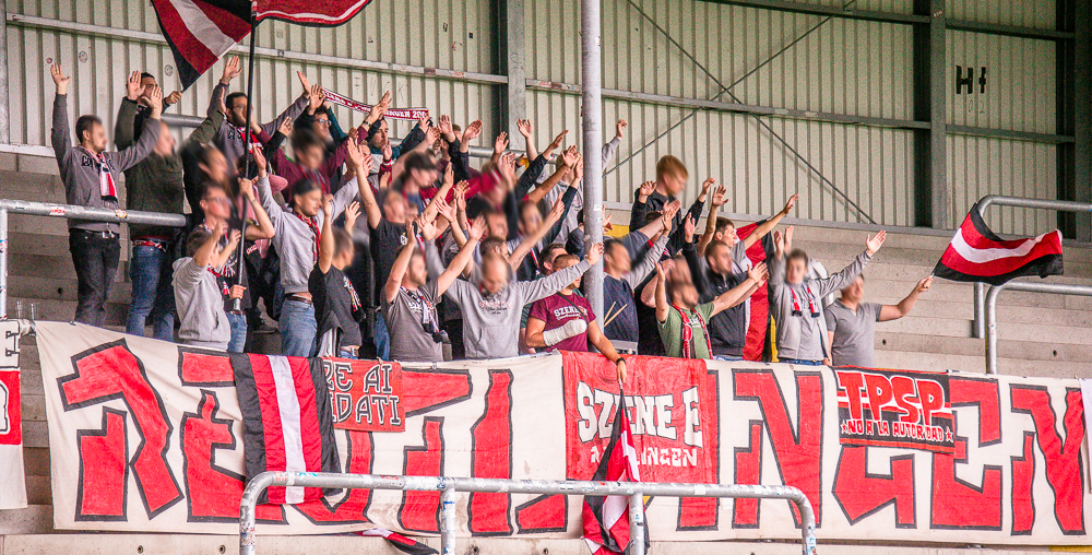 Dementsprechend motiviert startete unser 40-50 Personen umfassenden Supportmob in das Spiel und legte insgesamt über 90 Minuten einen Auftritt hin, der, den derzeitigen Umständen entsprechend, schon recht nahe an unsere Idealvorstellungen heran kam: Gute Liedauswahl, lange gehaltene Lieder und ein gelungener Tifo-Einsatz sowie die ein oder andere Schalparade rundeten unseren Support ab.